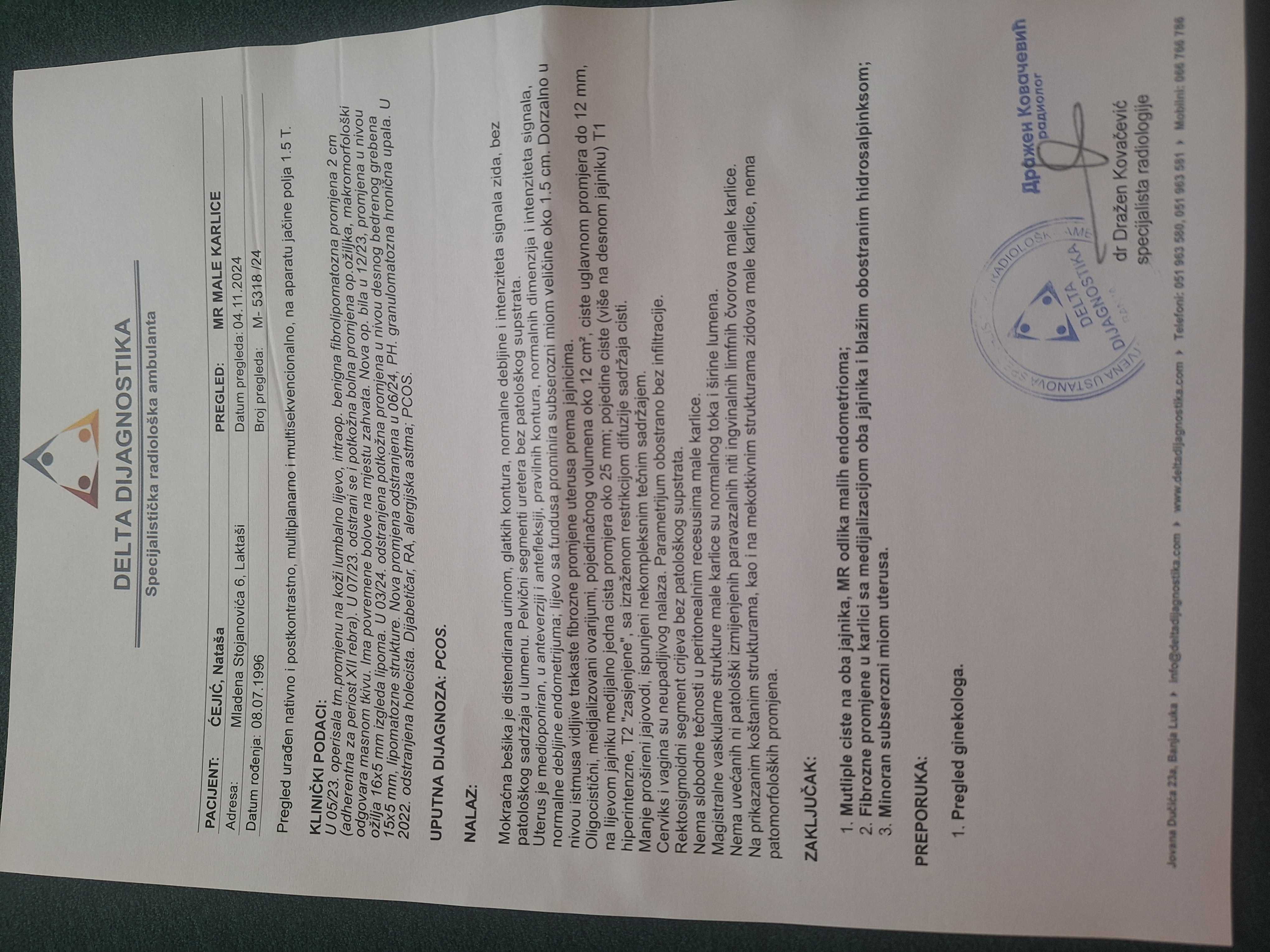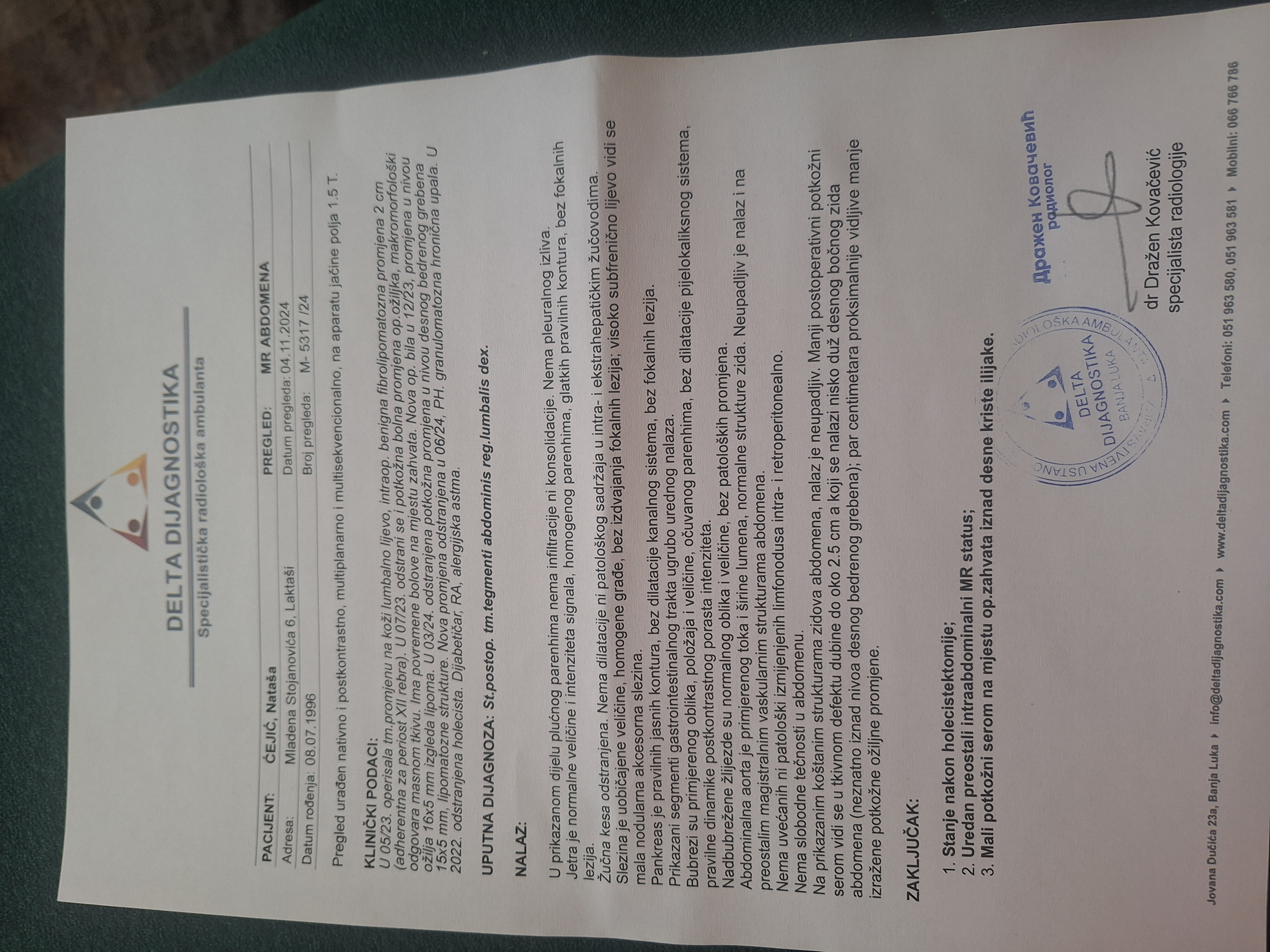 Posljednja operacija izvedena je u julu ove godine, kada joj je uklonjen tumor trbušnog zida. Nažalost, zdravstveno stanje se pogoršalo, te su najnoviji pregledi pokazali da Nataša ima tumor na materici, začepljenje jajovoda i druge degenerativne promjene.