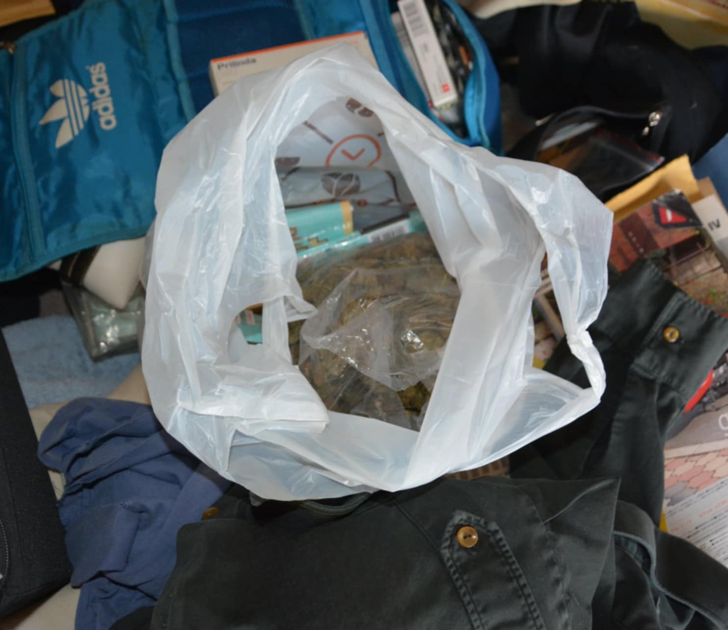 Tokom pretresa pronađeno je ukupno 200,1 gram zelene biljne materije koja izgledom podsjeća na marihuanu, 13,1 gram bijele praškaste materije koja asocira na kokain, te 0,7 grama žute praškaste materije i šprica sa smeđom smolastom materijom. Pored toga, oduzeta je i jedna ručno spravljena cigareta tzv. „džoint“.