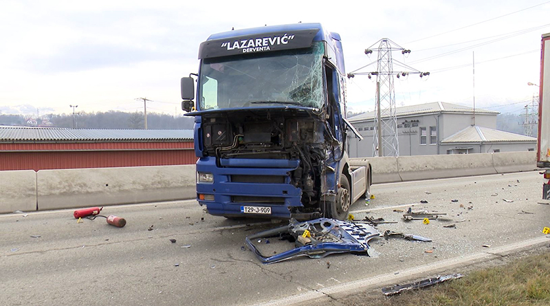 Na magistralnom putu M-17 , u Doboju, danas oko 11 časova dogodila se saobraćajna nesreća, u kojoj su učestvovala dva kamiona preduzeća „Tanjo-trans“ iz Goradža i „Lazarevć“ iz Dervente. Vozači oba kamion su, kako RTV Doboj saznaje, zadobili lakše tjelesne povrede, te su prevezeni u Hitnu pomoć.