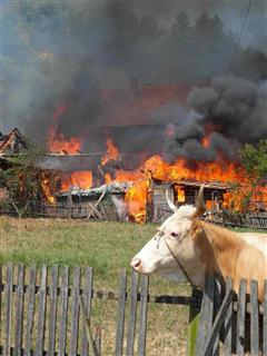 U požaru su danas izgorjeli kuća i pomoćni objekti Vlade Đurića iz Kakmuža u opštini Petrovo, javio je dopisnik Srne.