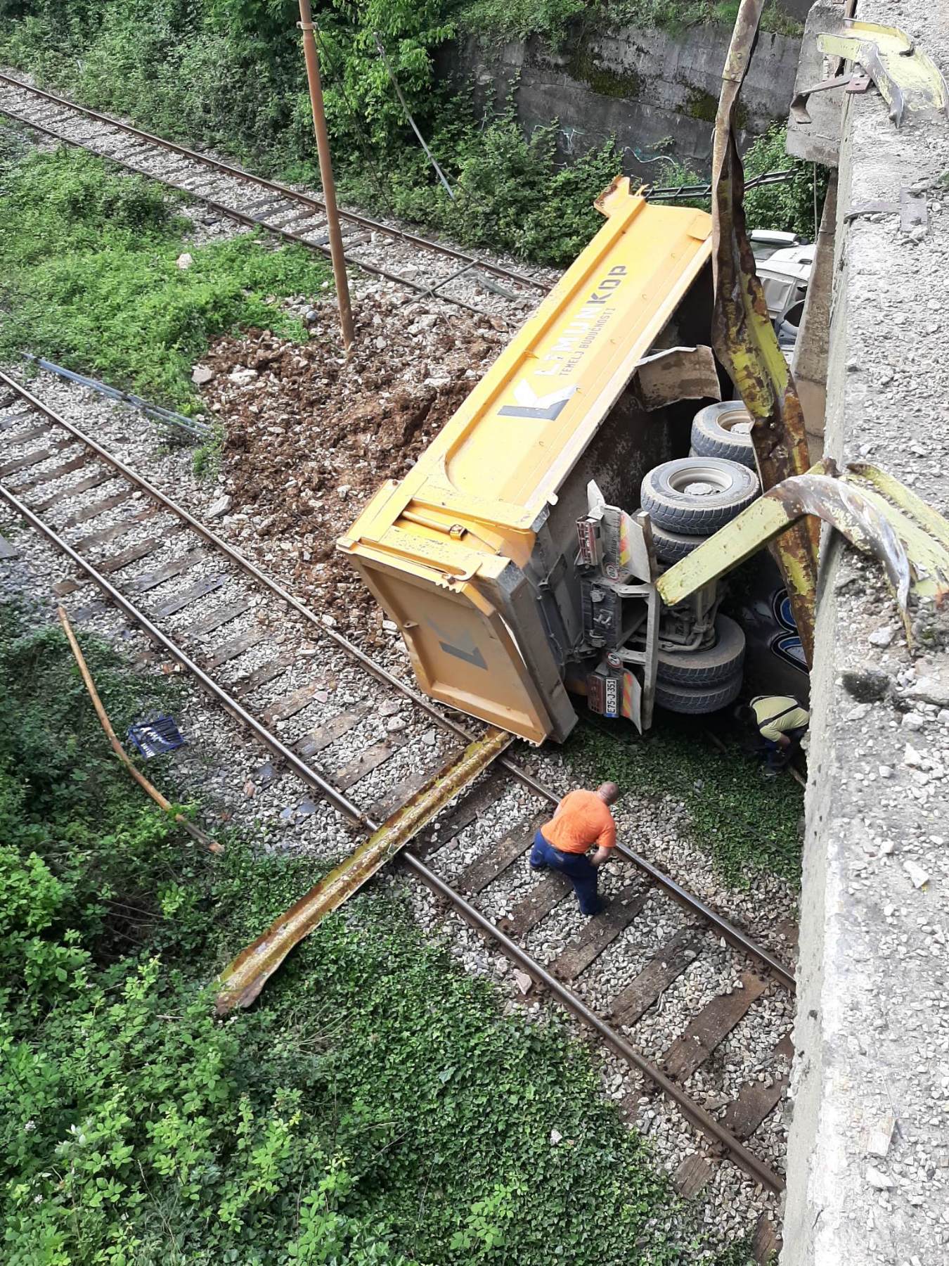 Sreća je da u momentu slijetanja kamiona nije niko naišao ni putem ni prugom jer je mogla biti velika tragedija.
