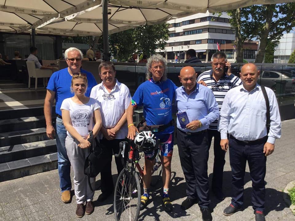 Rotari i Rotaract klubovi iz Doboaj danas su dočekali biciklistu Dušana Milojkova iz Pančeva koji u okviru projekta „Biciklom ze bebe“ planira za 65 dana preći osam hiljada kilometara.
