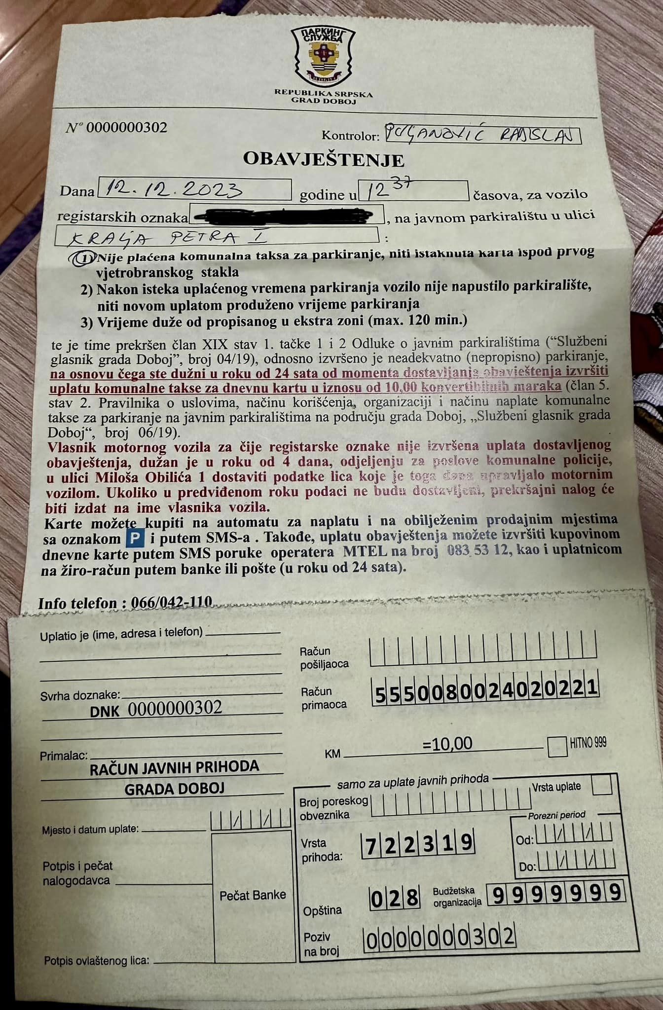 Pitanje naplate parkinga u Doboju već je dugo izvor kontroverzi, a najnoviji slučaj dijeljen na društvenim mrežama donosi novo značenje izreci "vjerovali ili ne".