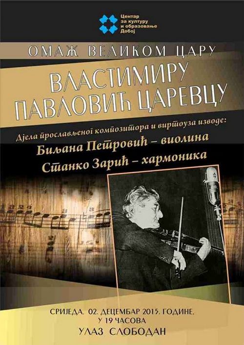 U srijedu, 2. decembra 2015. godine, u Umjetničkoj galeriji Centra za kulturu i obrazovanje sa početkom u 19 časova, održaće se koncert posvećen „velikom caru“ – Vlastimiru Pavloviću Carevcu.