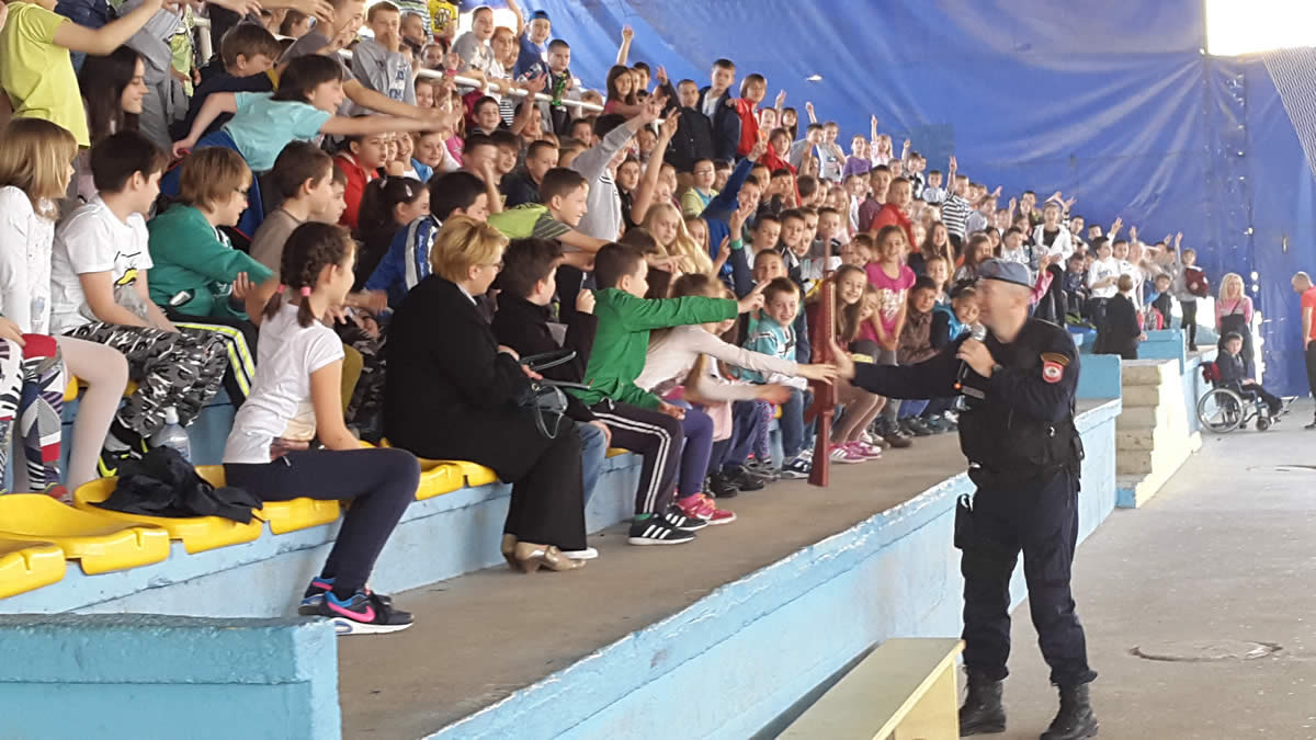 U okviru "Dana otvorenih vrata", na Stadionu sportskih igara za učenike nižih razreda osnovnih škola "Sveti Sava", "Vuk Stefanović Karadžić" i "Dositej Obradović" iz Doboja predstavljeni su oprema i materijalno-tehnička sredstva koje koriste policajci.