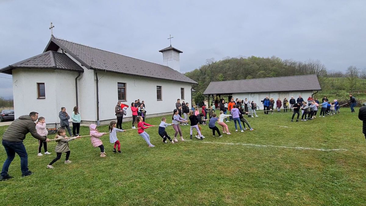 U porti hrama Svetog Vasilija Ostroškog u dobojskom naselju Usora danas su organizovane vaskršnje igre za najmlađe uz tradicionalnu tucijadu.