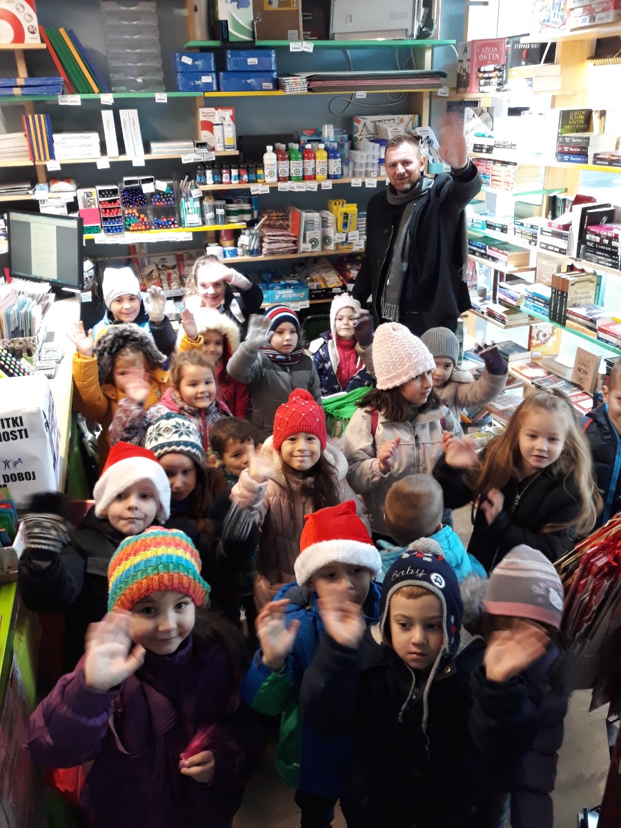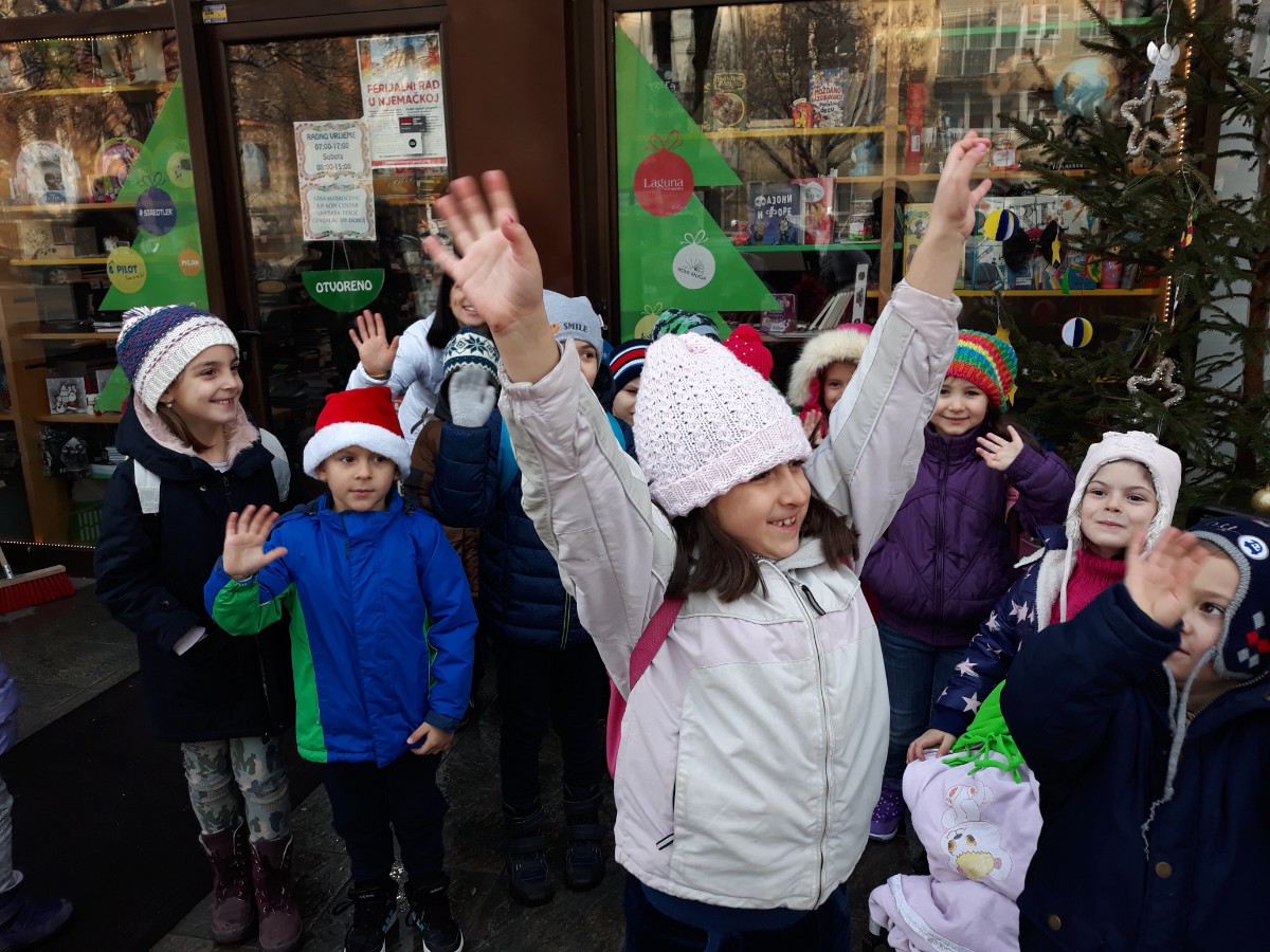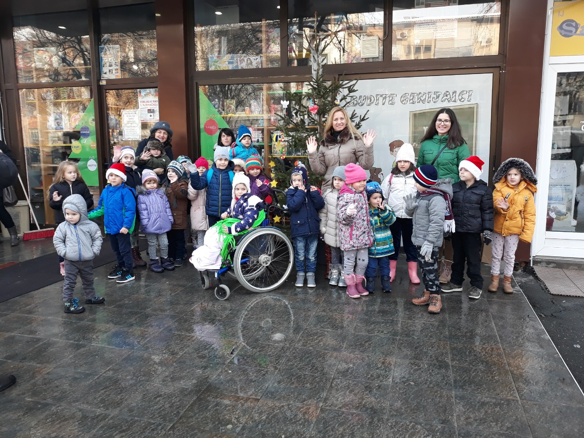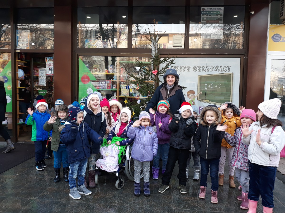 Početak zime veselo su obilježili najmlađi iz "Kuta za djecu". Uprkos poledici i snijegu i ove godine zimu su dočekali svečanim kićenjem jelke ispred knjižare Genijalac.