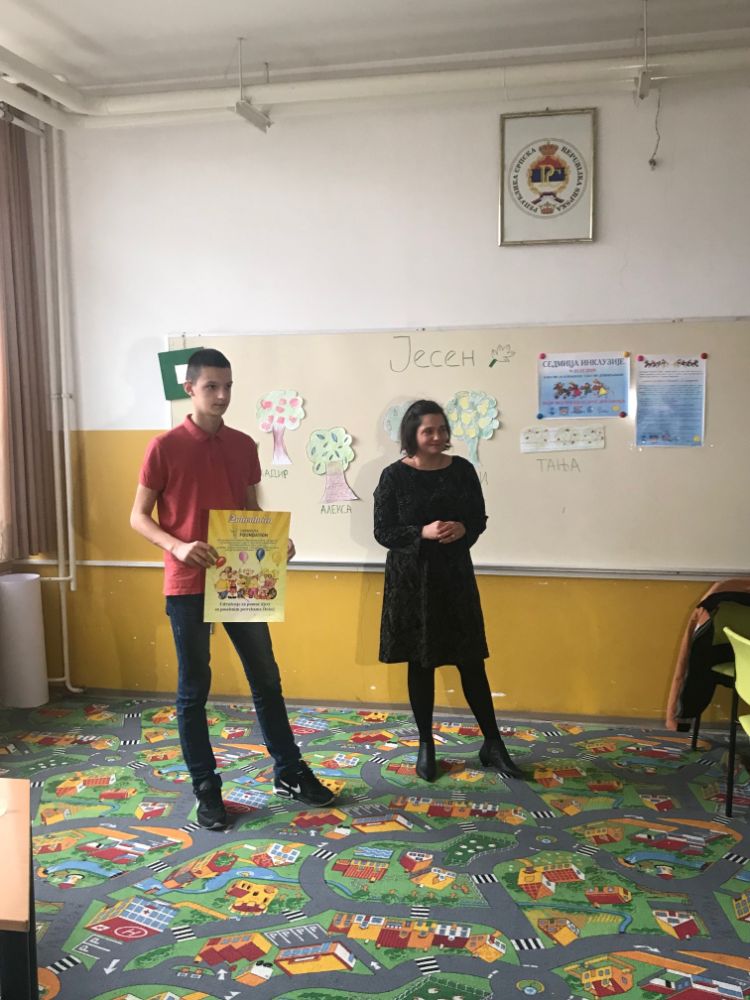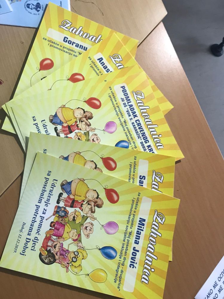 Radionice koje su držali u školi podstakli su učenike iz Podmlatka Crvenog krsta Osnovne škole "Vuk Stefanović Karadžić" da naprave radionice za svoje drugove u razredima, tako da su zahvalnice za podršku inkluziji dobile Anastasija Bjelanović, Anastasija Marković i Milana Jović. Svesrdnu pomoć Udruženje je imalo i od Koalicije OOSI regije Doboj. Predstavnik OOSI Zoran Panić čestitao je Sanji i Goranu, istako važnost unapređenja položaja osoba sa invaliditetom ali i potrebu da se mladi kroz organizacije i udruženja osposobljavaju da budu aktivni u promovisanju svojih prava.