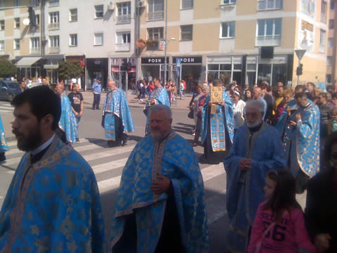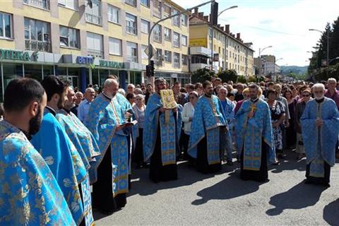 Nakon liturgije, litija sa Časnim krstom i ikonom prošla je centralnim gradskim ulicama.
