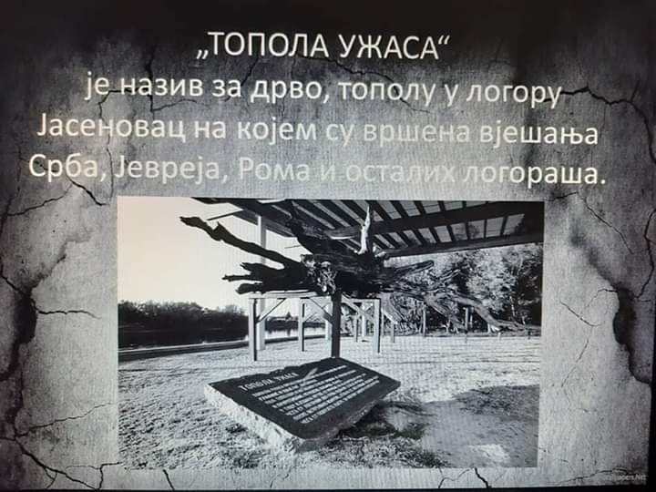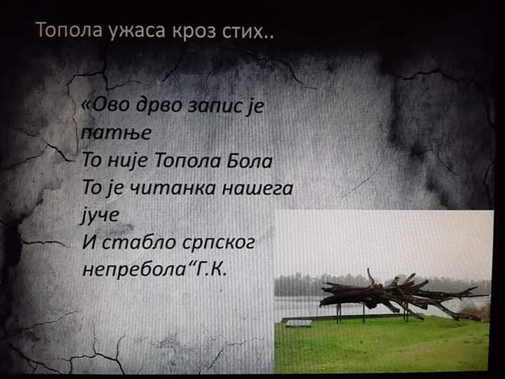 Učenica devetog razreda područnog odjeljenja Trbuk, Valentina Stojanović, slikovitim prikazom predstavila je život Srba, Jevreja i Roma u tom periodu. Generacije mladih treba da oproste, ali nikada da ne zaborave i da se nikada nikome ne ponovi.