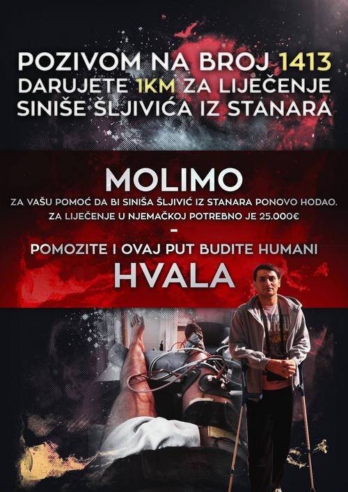 Siniša Šljivić prije više od tri godine imao je bezazlenu povredu skočnog zgloba desne noge. Zbog nepravilnog liječenja i nemarnosti određenih doktora njegovo stanje se pogoršalo i došlo je do tog da više ne može da se osloni na stopalo, trpi konstante bolove, natečenost stopala, nemogućnost da samostalno negdje ode, oštećenje ligamenata, hrskavice, nervnih završetaka kao i još mnogo toga.