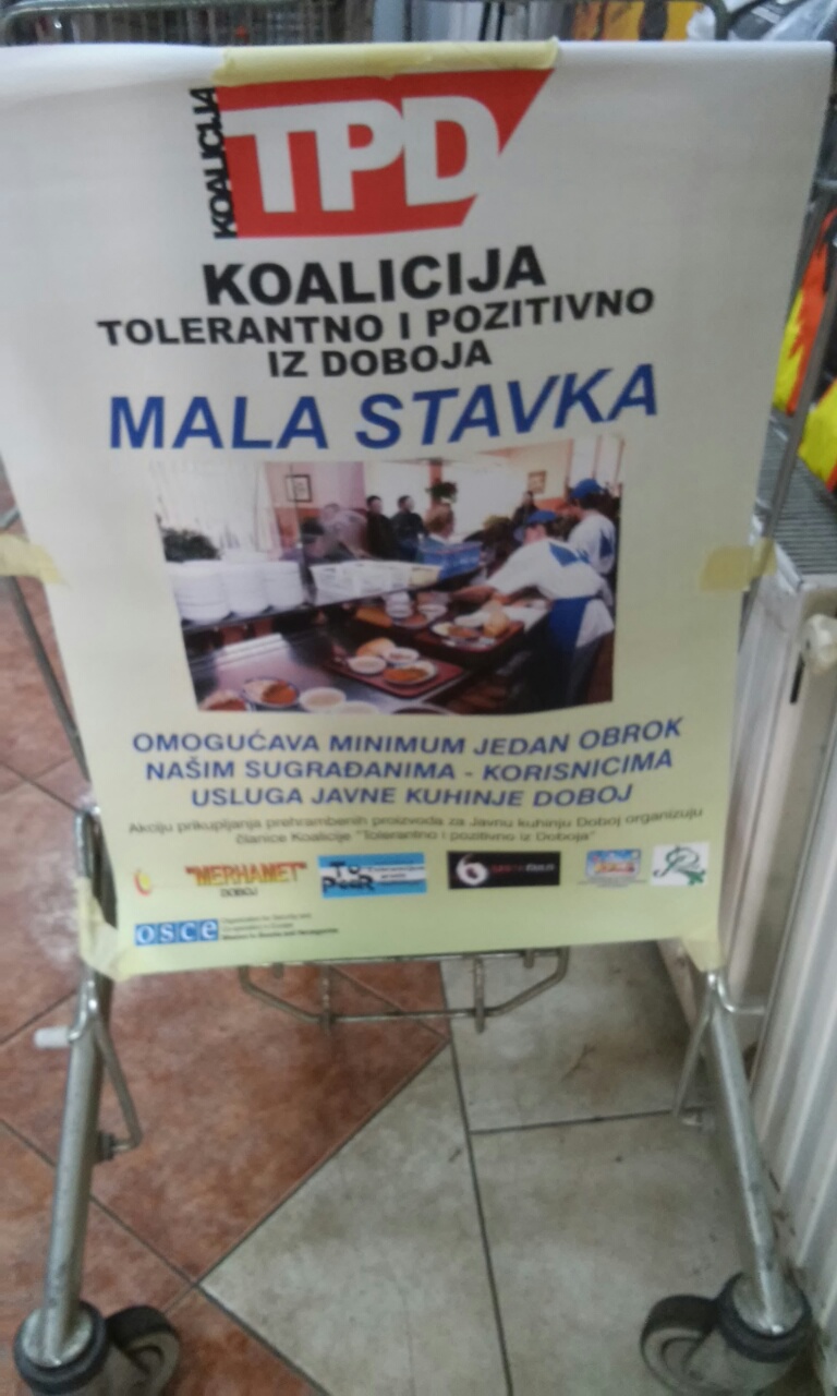 Koalicija „Tolerantno i pozitivno iz Doboja“ organizuje humanitarnu akciju u saradnji sa trgovačkim centrima: KONZUM, BINGO, BELAMIONIX, ĐURIĆ (market na Zelenoj pijaci) i KOŠUTA i podršku OSCE Misija u BiH.