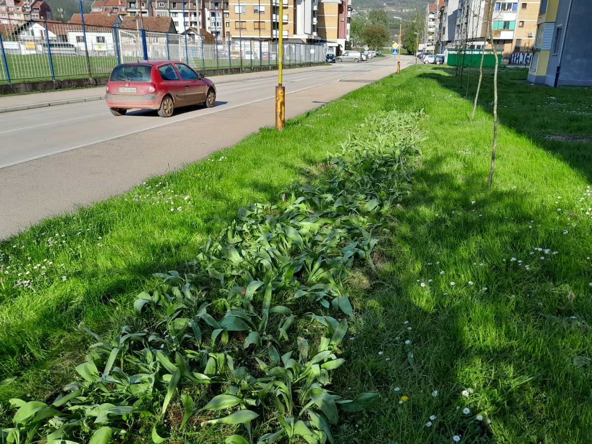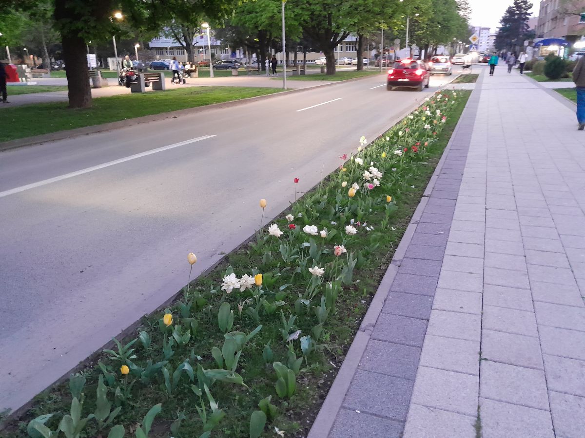 Pogledajte fotografije kod Doma penzionera i kod boračke zgrade. Zapušteni tulipani zarasli u travi izgledaju žalosno. A nešto bolje se drže kod Centra za kulturu. Tu ih barem točkovi automobila zaliju iz obližnje bare sa ulice.