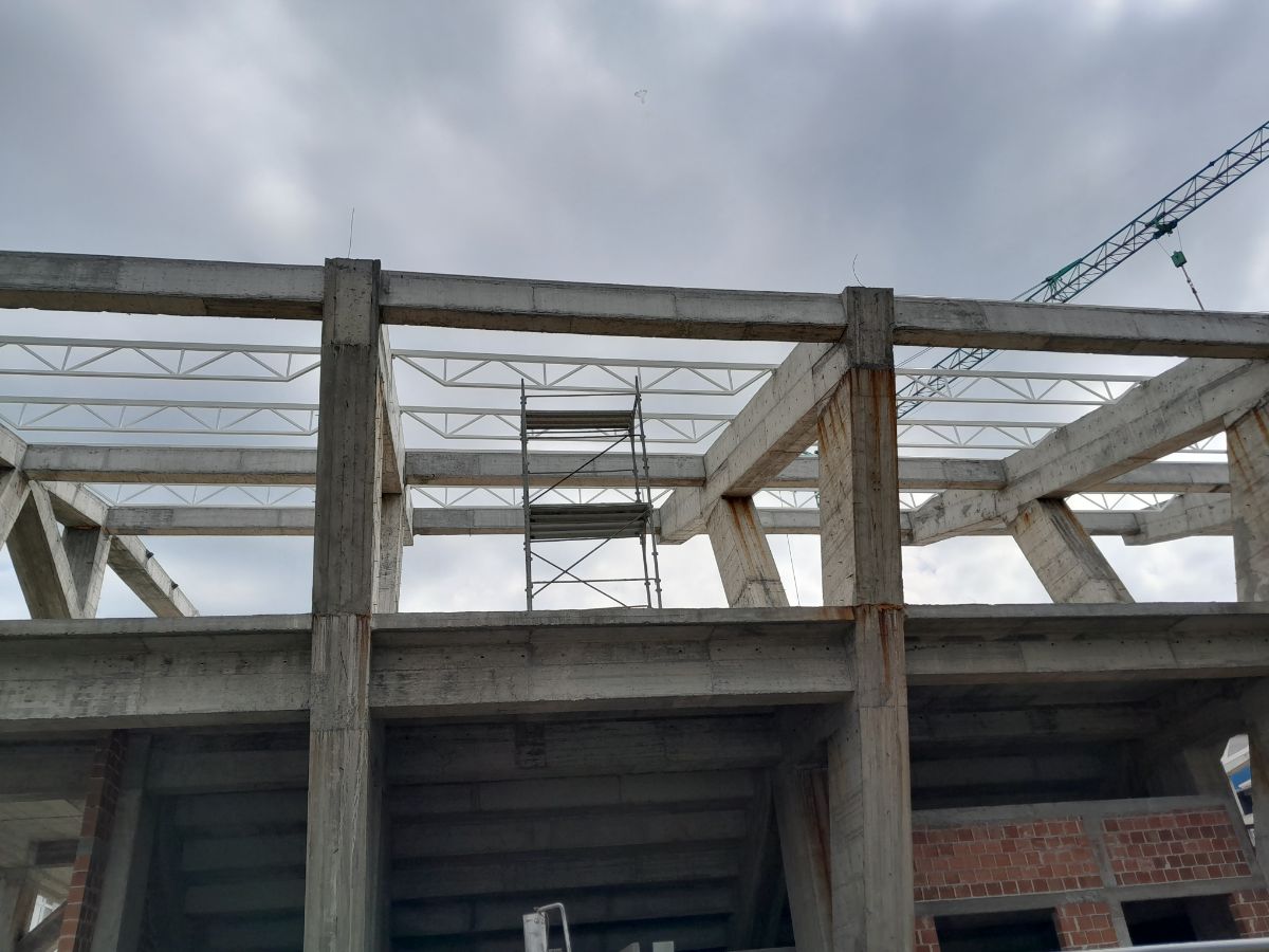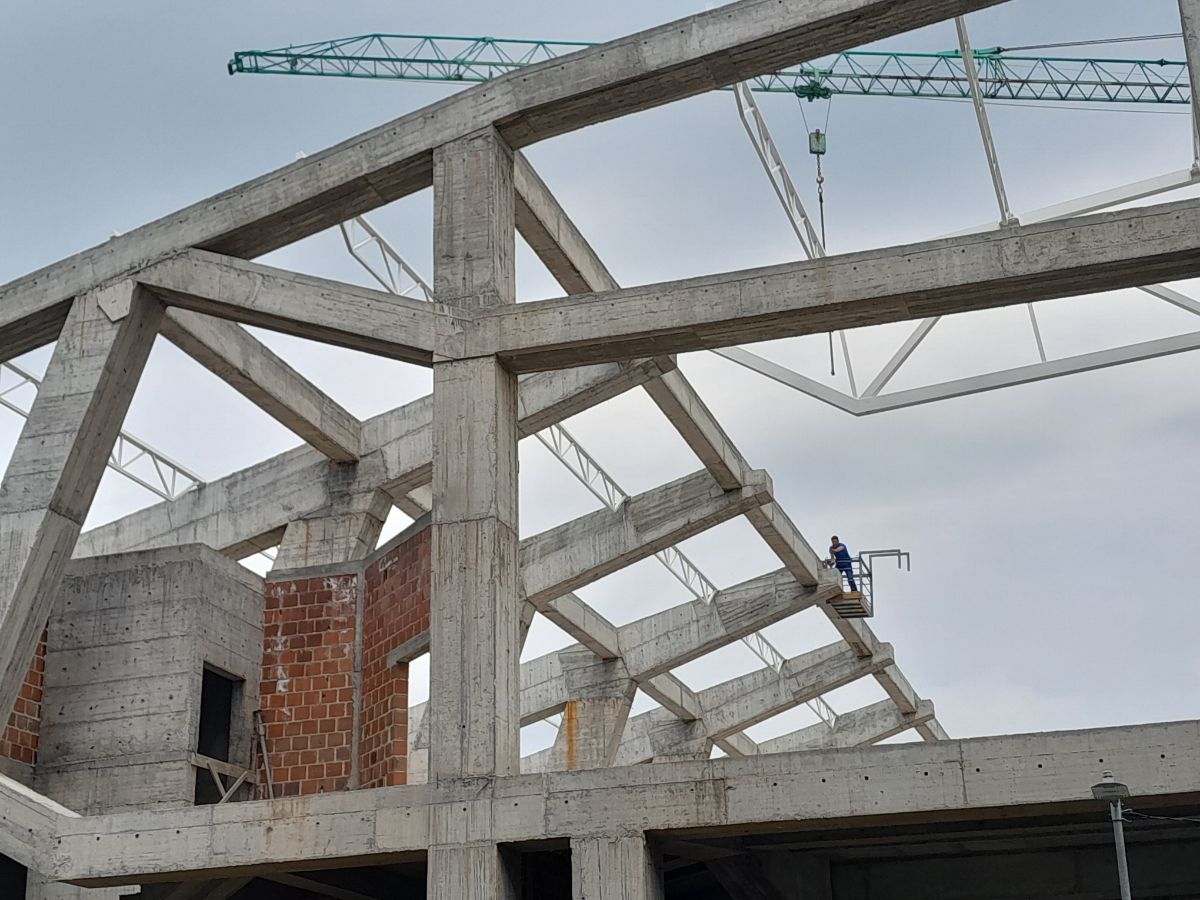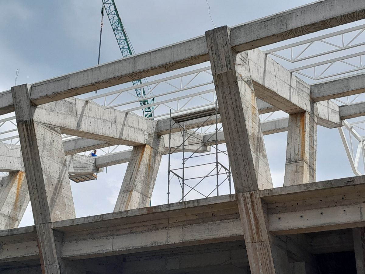 Kao što se na video-snimku vidi počela je izgradnja odnosno montaža čeličnih krovnih konstrukcija.