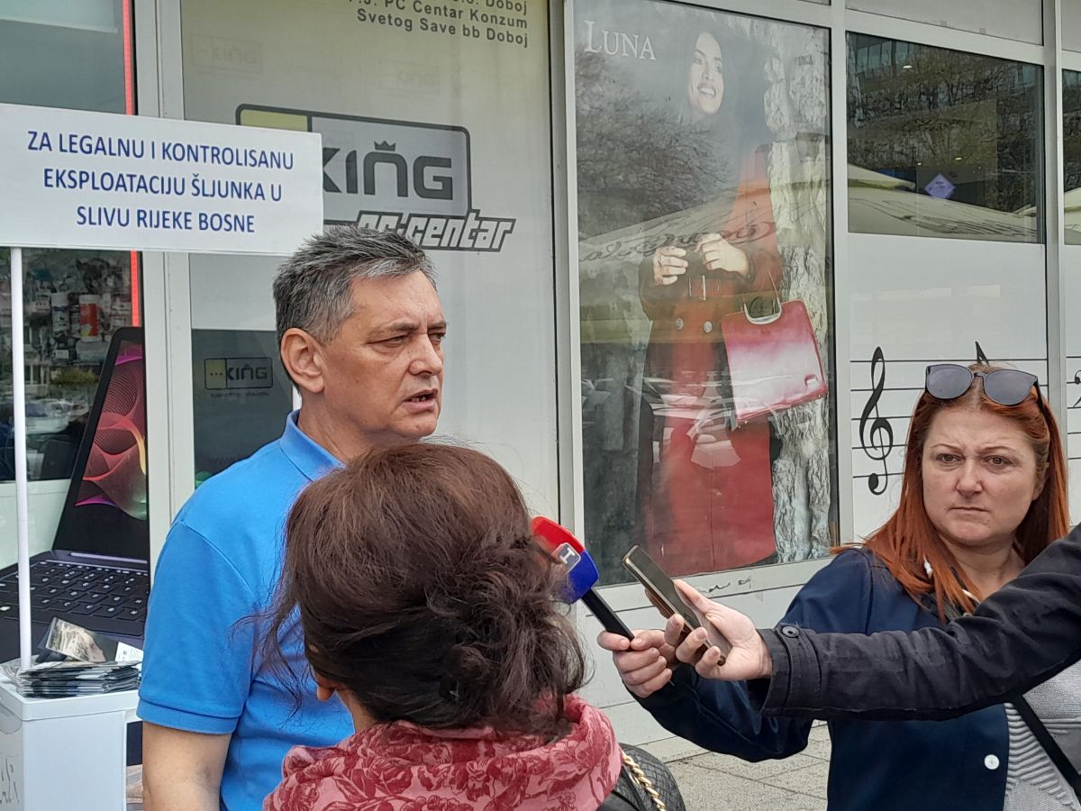 Juče su članovi Neformalne grupe građana "Za legalnu i kontrolisanu eksploataciju šljunka u slivu rijeke Bosne" u centru Doboja držali prezentaciju i dijelili propagandni materijal. Oni su ukazali na neadekvatnu eksploataciju šljunka, opasnost od novih poplava i postojanje korupcije u ovoj oblasti.