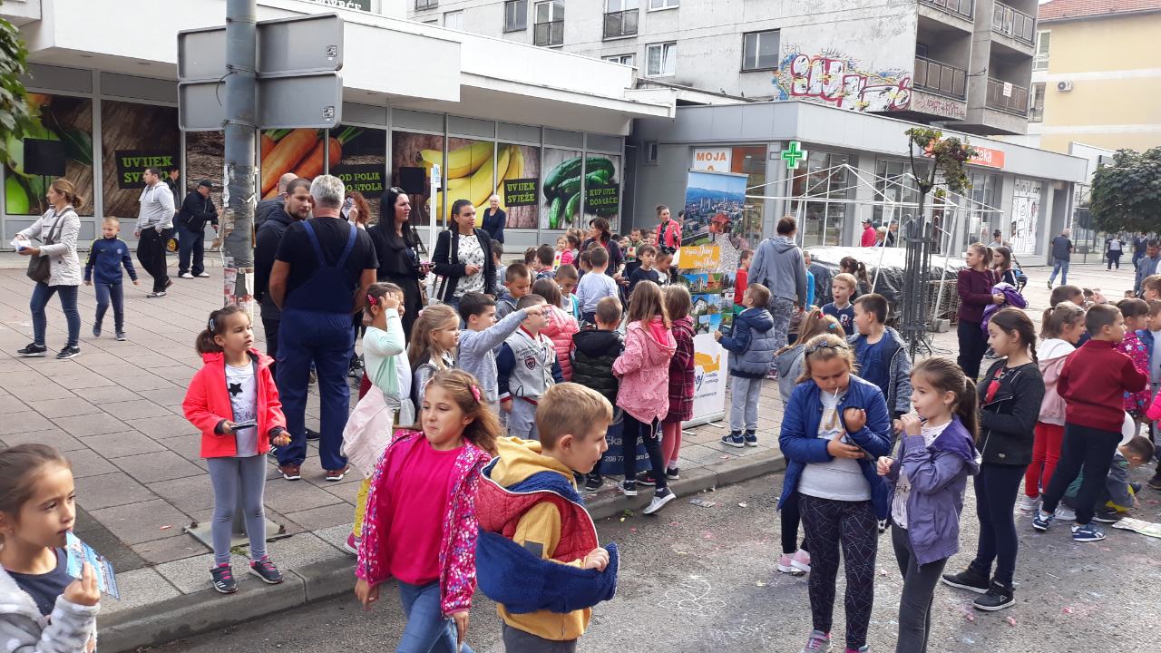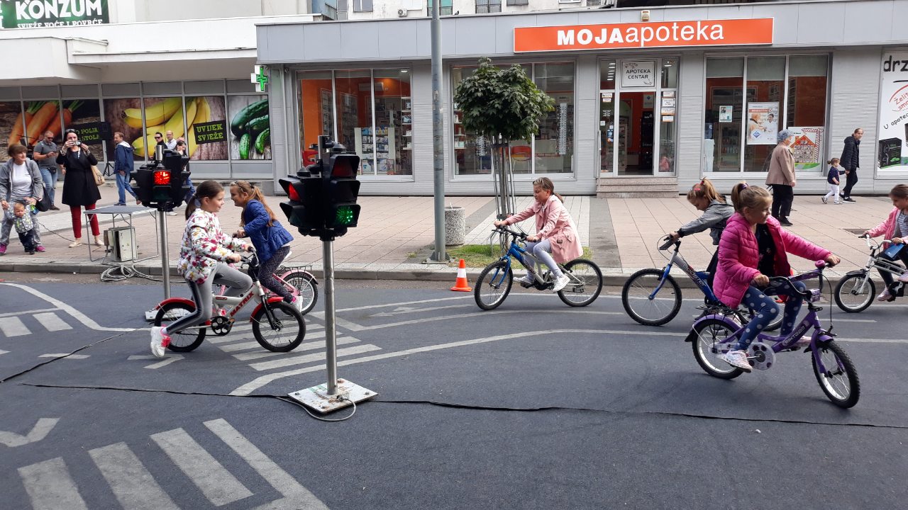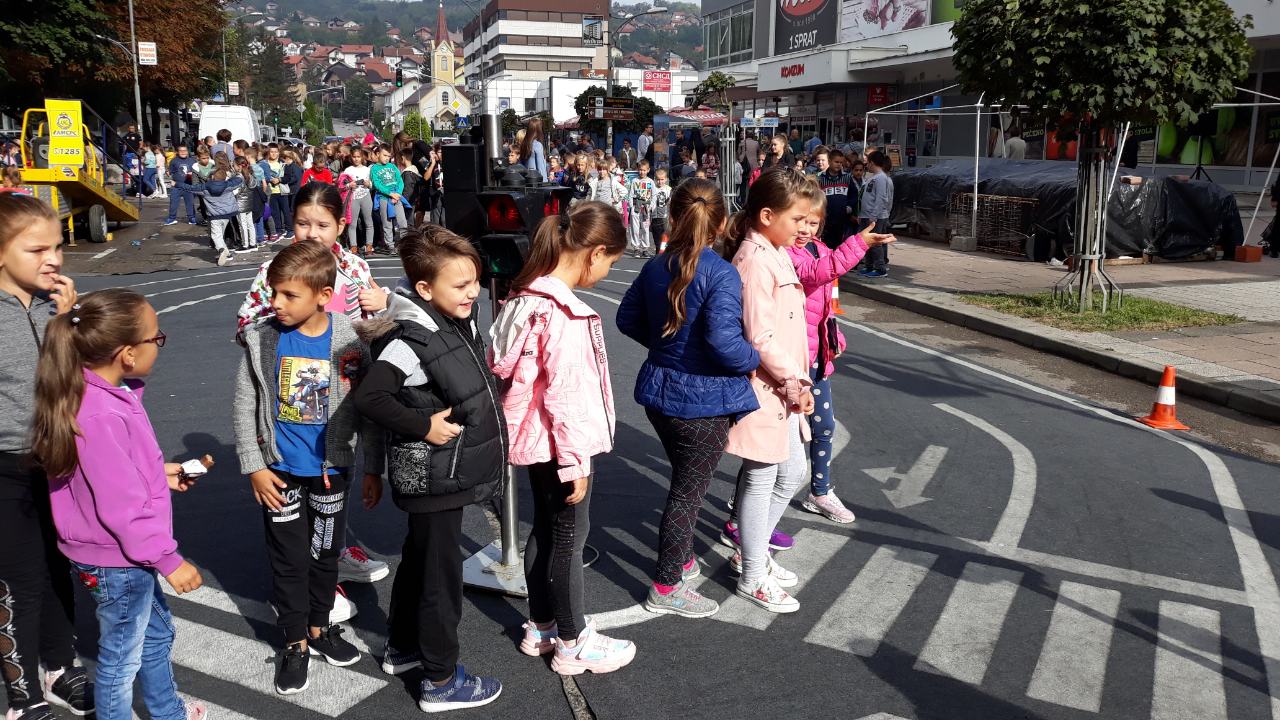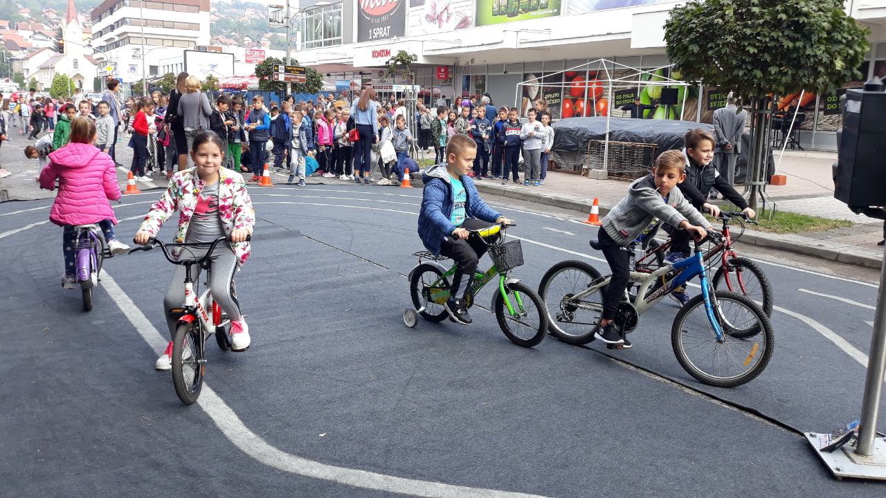 U glavnoj ulici postavljeni su info pultovi i saobraćajni poligoni. Djeca su mogla crtati, probati vožnju bicikla, provjeriti znanje o saobraćaju.