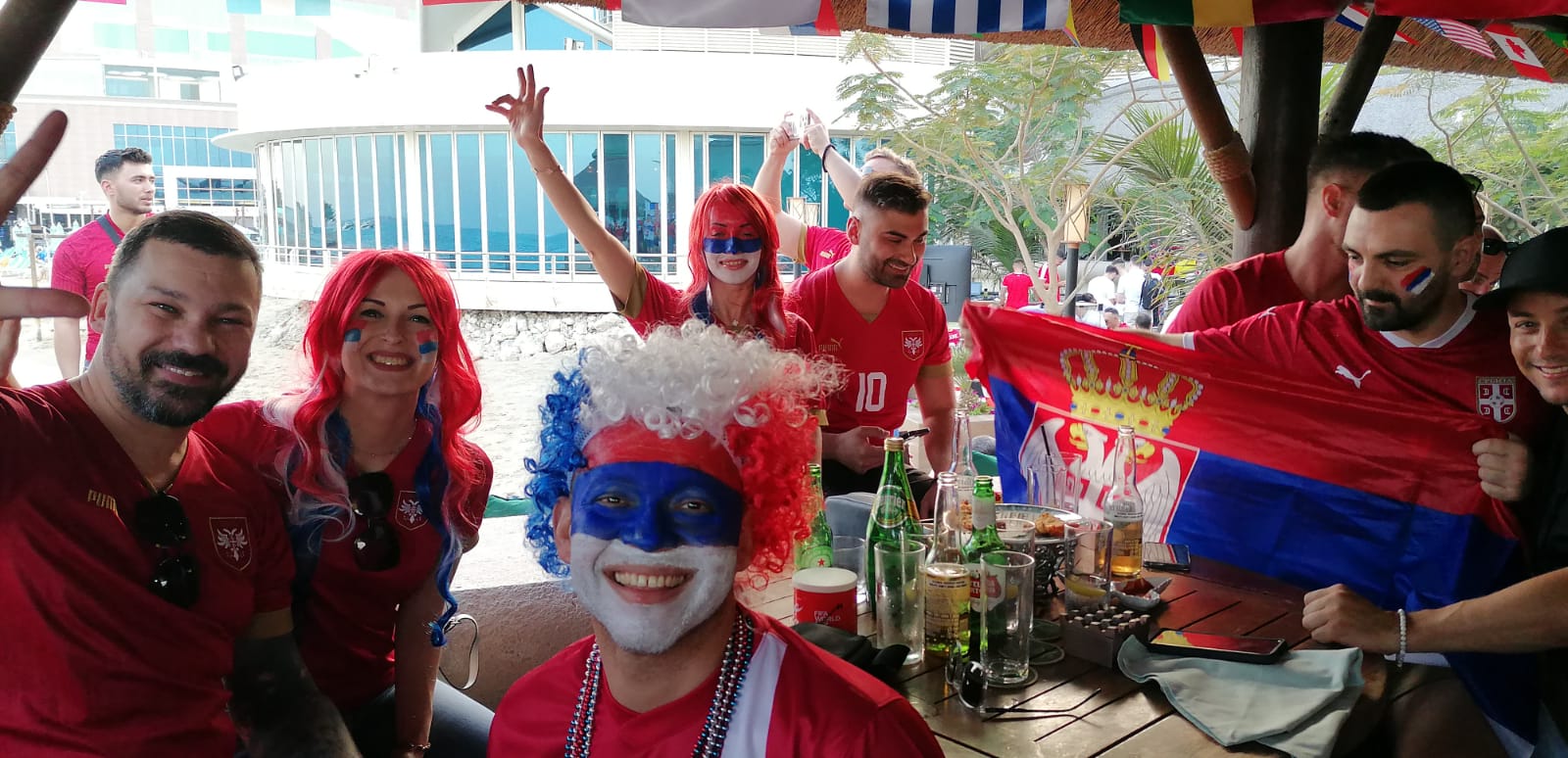 Veliki deo srpskih navijača, a među njima i grupa Dobojlija, okupio se na jednoj plaži u Dohi i "žurka" pred meč sa Brazilom uveliko je počela.