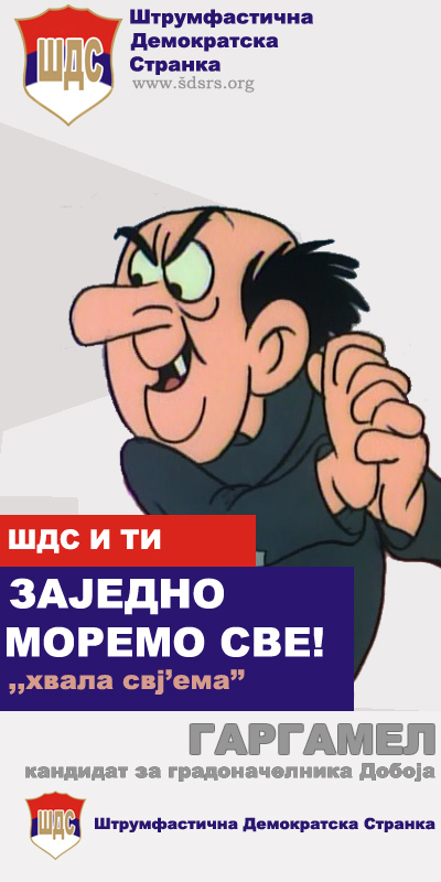 Pošto polako ulazimo u finiš predizborne kampanje, prije samog osvita prvog dana predizborne šutnje, namjera nam je da građanima predstavimo, s obzirom na raspored materijalnih sredstava i javnih resursa, starog i vjerovatno novog gradonačelnika štrumfastičnog grada Doboja, ali i njegovu listu kandidata za odbornička mjesta u Skupštini grada Doboja.