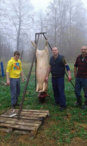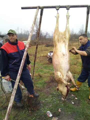 Na fotografijama je svinjokolj u Nedićima. Stručno lice je Branimir Mimi Jović.