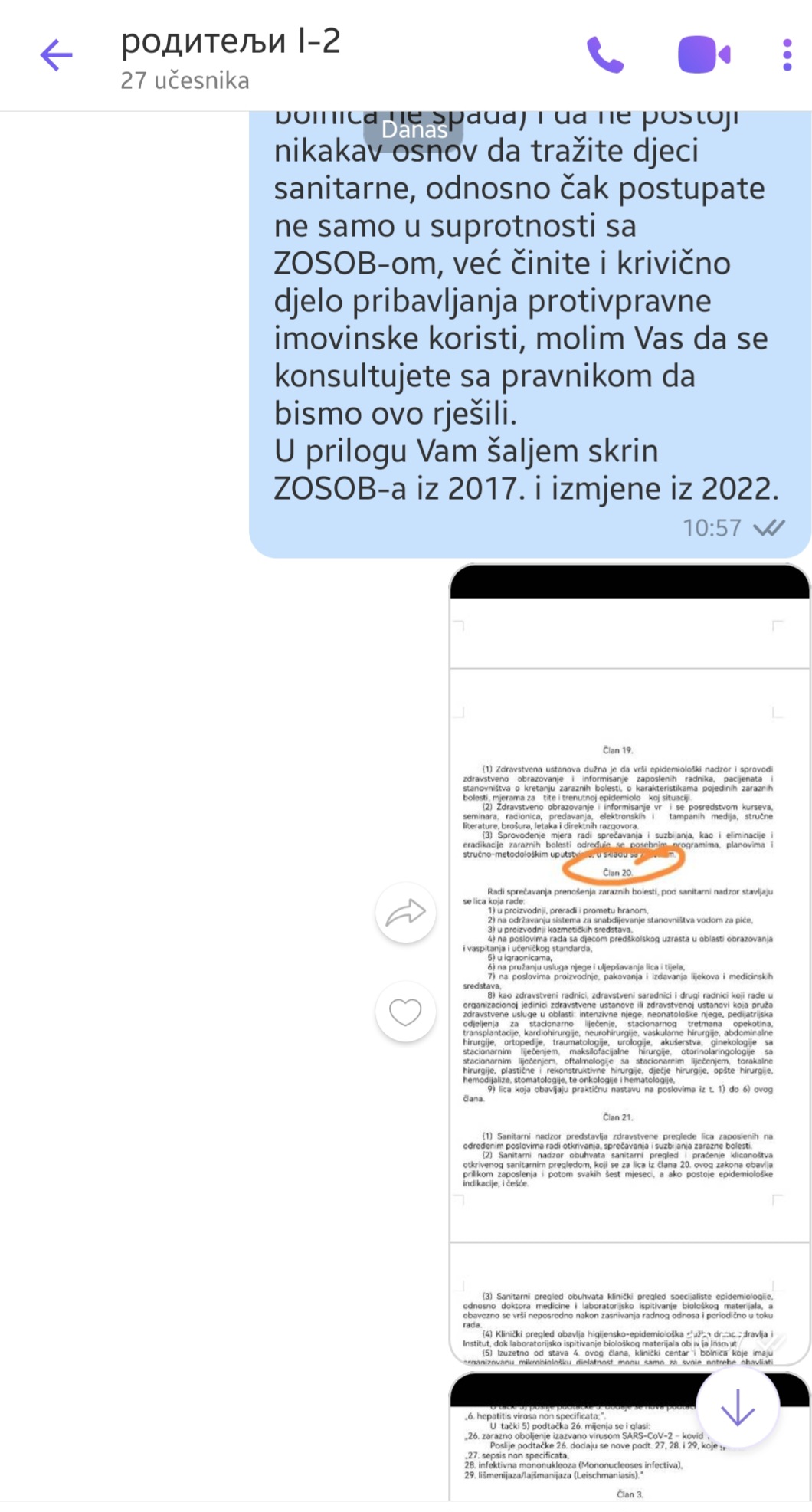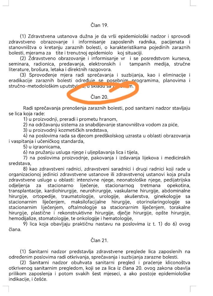 Uzimajući stvar u svoje ruke, a u ovom slučaju Zakon o zaštiti stanovništva od zaraznih bolesti (jer moramo biti i pravnici kad škola istog uzalud plaća) nađosmo član 20. koji propisuje ko je predmet sanitarnog nadzora, pa onda i izmjenu iz 2022. koja se isto ne odnosi na djecu koja obavljaju praksu u bolnici.