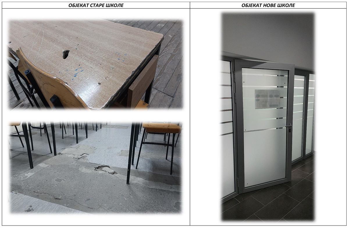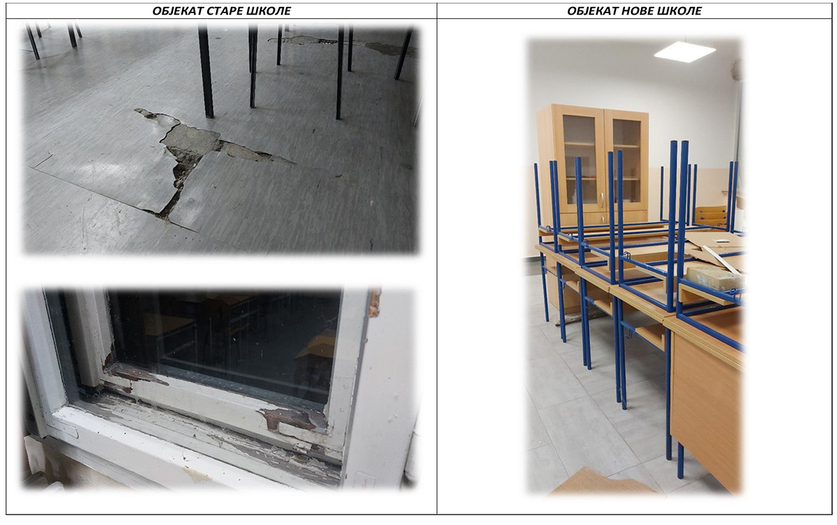 Pola decenije u čekanju na preseljenje, u starom postojećem objektu gdje se nastava odvija trenutno, početak školske godine obilježili su problemi na snabdijevanju vodom, kvarovi sistema grijanja, ubrzano propadanje podova, plafona, stolarije, krova itd. U novom neuseljenom objektu istovremeno urušavanje završnih radova maltera, obzirom da su rađeni zimi na niskim temperaturama i obzirom da isti nije useljen i ne održava se, stojeći, propada.