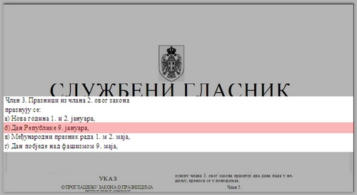 Onaj ko čita retke ovog teksta, neka se upita koliko je vidio izviješenih trobojki na Dan Republike prije nego što je Ustavni sud donio odluku po apleaciji Bakira Izetbegovića. Koliko je građana Republike Srpske bilo svjesno da je 9. januar Dan Republike? Odgovor je veoma malo. Prilikom održavanja raznih svečanosti, ako zvanični narator ne upozori prisutne, prilikom intoniranja početnih taktova himne Republike Srpske ,,Moja Republika’’ većina prisutnih će ostati u sjedećem položaju, a u najboljem slučaju u stojećem stavu će iskazivati potpunu ravnodušnost razgledajući enterijer u prostoriji ili ljude oko sebe. U ozbiljnim društvima, takav postupak nekog pojedinca smatrao bi se prvorazrednim aktom nepoštovanja prema datoj državi. Koliko građana Republike Srpske, onih kojima ona nešto znači, zna kojeg se datuma obilježava Dan ustavnosti Republike Srpske? Veoma malo. Međutim, kada bi fingirali situaciju u kojoj bi visoki predstavnik zvaničnu himnu, odnosno Dan ustavnosti proglasio nelegalnim, vjerovatno bi većini ,,Moja Republika’’ postala naljepša pjesma koju su čuli u svom životu, a Dan ustavnosti dan zbog kojeg treba prolivati krv.