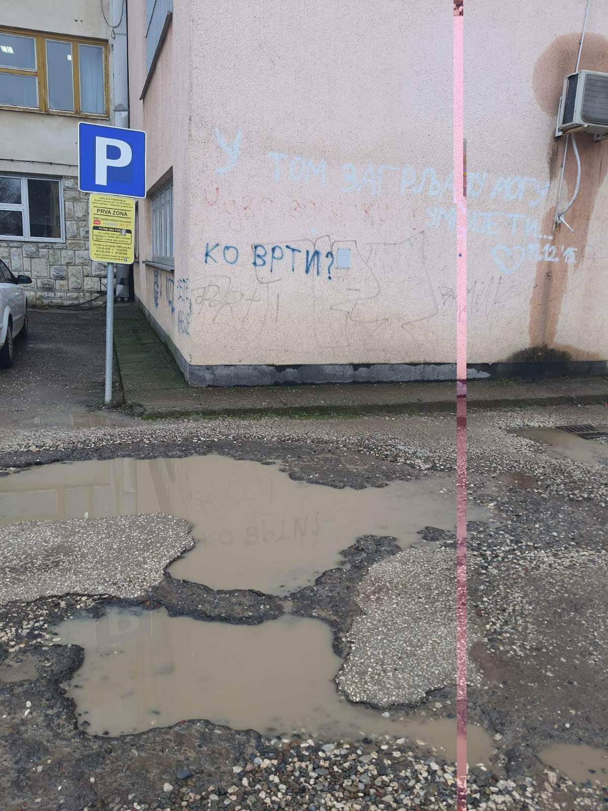 Kaže da zna da je Dirg specijalista da lopatama asfaltira rupe po gradu pa se nada da će tako ubrzo zakrpiti i kratere na ovom parkingu. Prije nego što točkovi ne otpadnu.