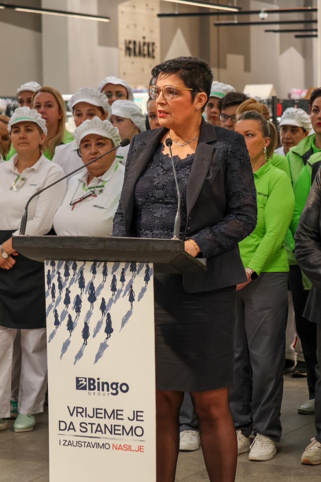 „Danas su stale sa radom sve Bingo trgovine – njih više od 230 – u cijeloj Bosni i Hercegovini. Stale su Dita, Pivara Tuzla, Ingram, Kaletex, Duka, naša fabrika tjestenine, fabrika papira, stala je i Bingo Farma - sve naše fabrike, farme i proizvodne kompanije koje posluju u okviru Bingo grupacije. Jer vrijeme je da stanemo i zaustavimo nasilje nad ženama.“ kazala je izvršna direktorica Binga Ljiljana Kunosić.