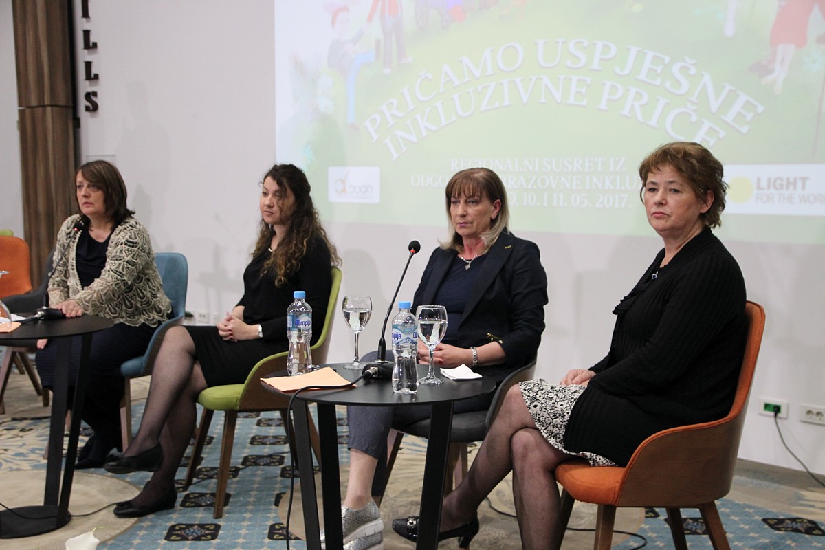 “Ohrabreni smo primjerima dobrih praksi koje smo imali priliku čuti i razmjeniti tokom dva dana Susreta. Praktičari su došli sa jasnim pedagoškim praksama uključivanja djece s teškoćama uredovan sistem školovanja. Dobili smo koncepte i ideje kako je moguće teoretska polazišta i zakonska rješenja uspješno pretočiti u život u odjeljenju, školi i zajednici”, kaže Anka Izetbegović, izvršna direktorica Udruženja “Duga” iz Sarajeva koje je uz podršku organizacije “Light for the World” iz Austrije organiziralo dvodnevniskup pod motom “Pričamo uspješne inkluzivne priče”.