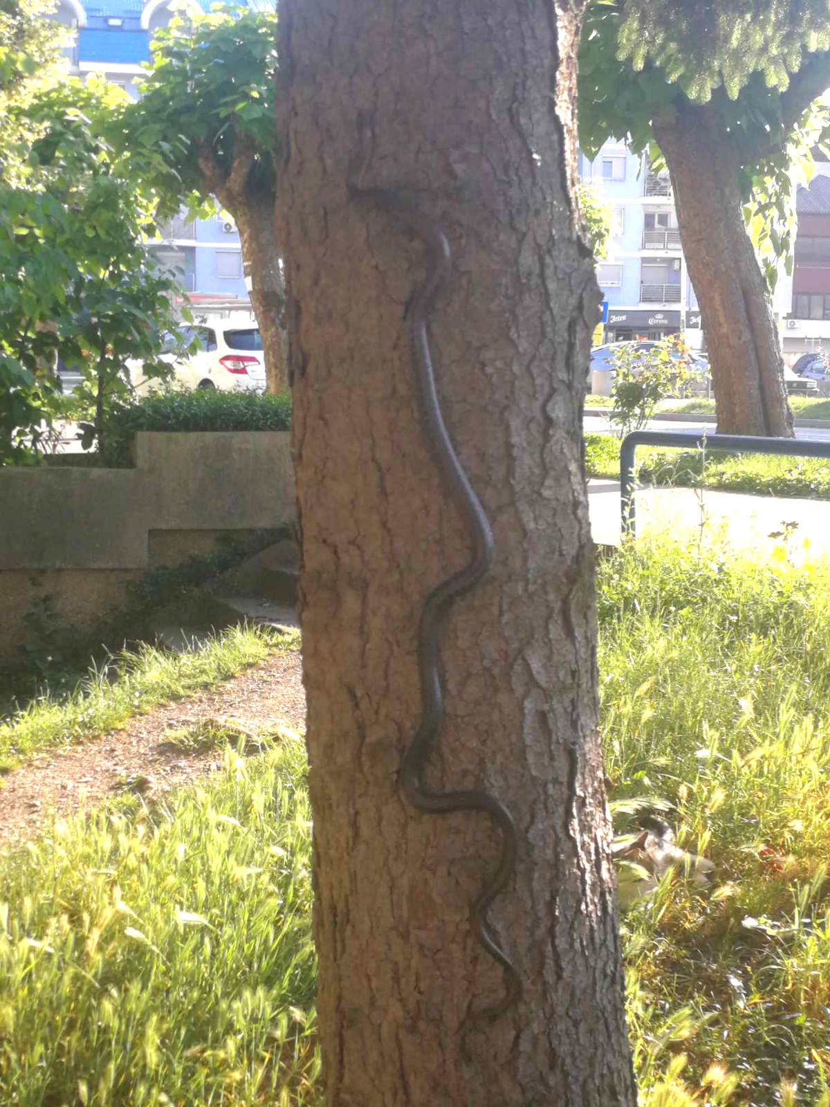 Nakon što se osvježila u kafiću, zmija je odlučila potražiti malo mira i hlada. Krenula je prema obližnjem parku gdje je pronašla veliko drvo s bujnom krošnjom. Tu se udobno smjestila pod gustim granama, koje su pružale ugodnu hladovinu. Sunčeve zrake nježno su prolazile kroz lišće, stvarajući savršene uvjete za opuštanje i sijestu.