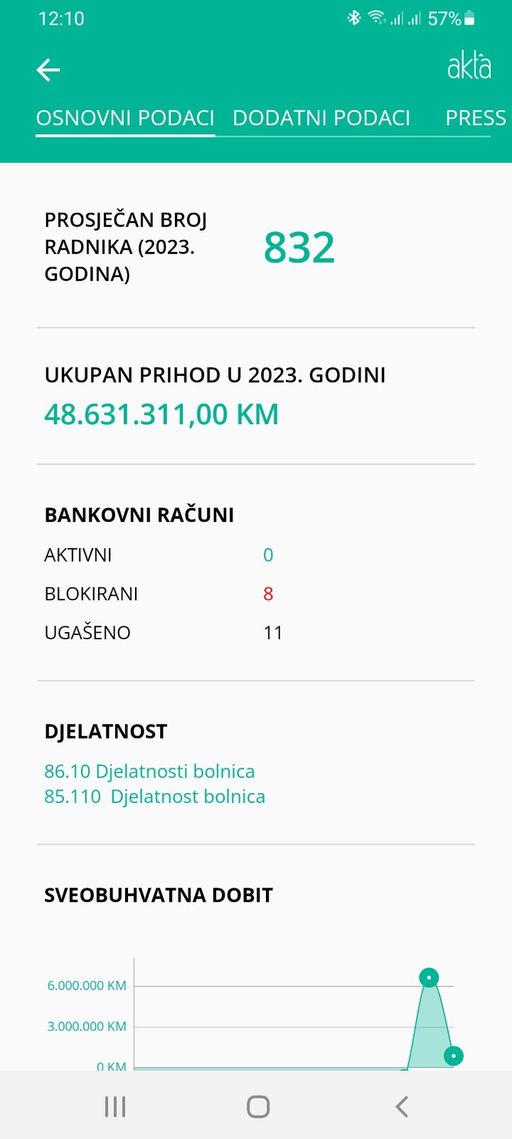 Prema dostupnim podacima, bolnica koja ima prosječan broj od 832 zaposlenih u 2023. godini i ostvarila prihod od 48.631.311 KM, trenutno nema aktivnih bankovnih računa, dok je osam računa blokirano, a 11 ugašeno. Uprkos značajnom budžetu, finansijski problemi ove ustanove i dalje traju.