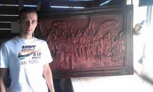 "Prvi rad koji sam napravio bila je ikona Sv. Georgija koja je nastala nakon što sam pogledao snimak rada na Internetu, a zatim uzeo alat u ruke i veliki komad drveta. Kasnije mi to postaje posao od kojeg živim", govori Dejan.
