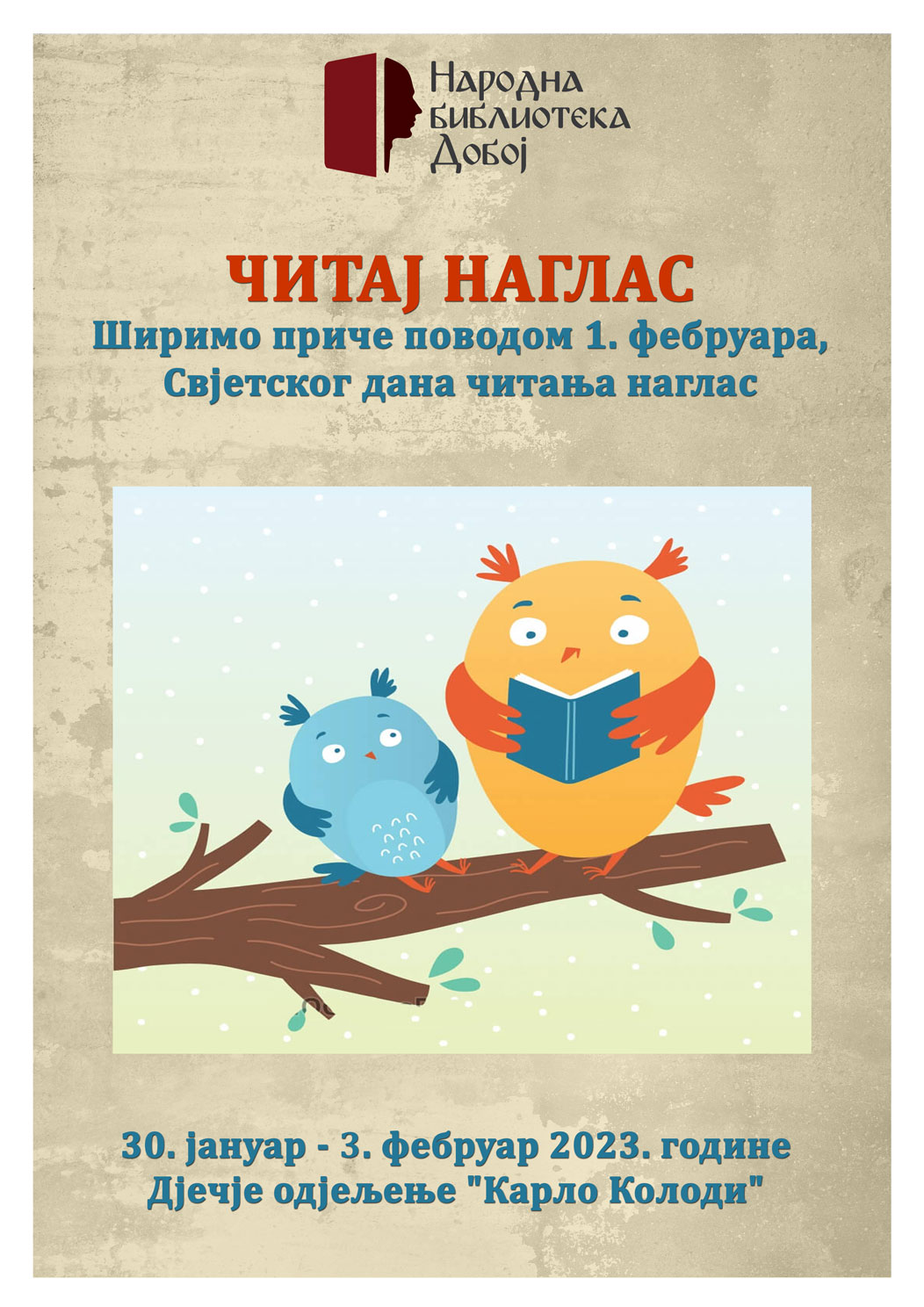 U Narodnoj biblioteci u Doboju je, povodom Svjetskog dana čitanja naglas, do petka, 3. februara organizovano čitanje priča za djecu predškolskog uzrasta.