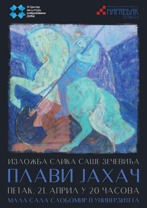 Centar za kulturu i obrazovanje Doboj poziva sve ljubitelje likovne umjetnosti da prisustvuju svečanom otvaranju izložbe "Plavi jahač" autora Saše Zečevića iz Žepča. Izložba će biti otvorena u petak, 21. aprila, s početkom u 20 časova, u maloj sali Pavlović univerziteta.
