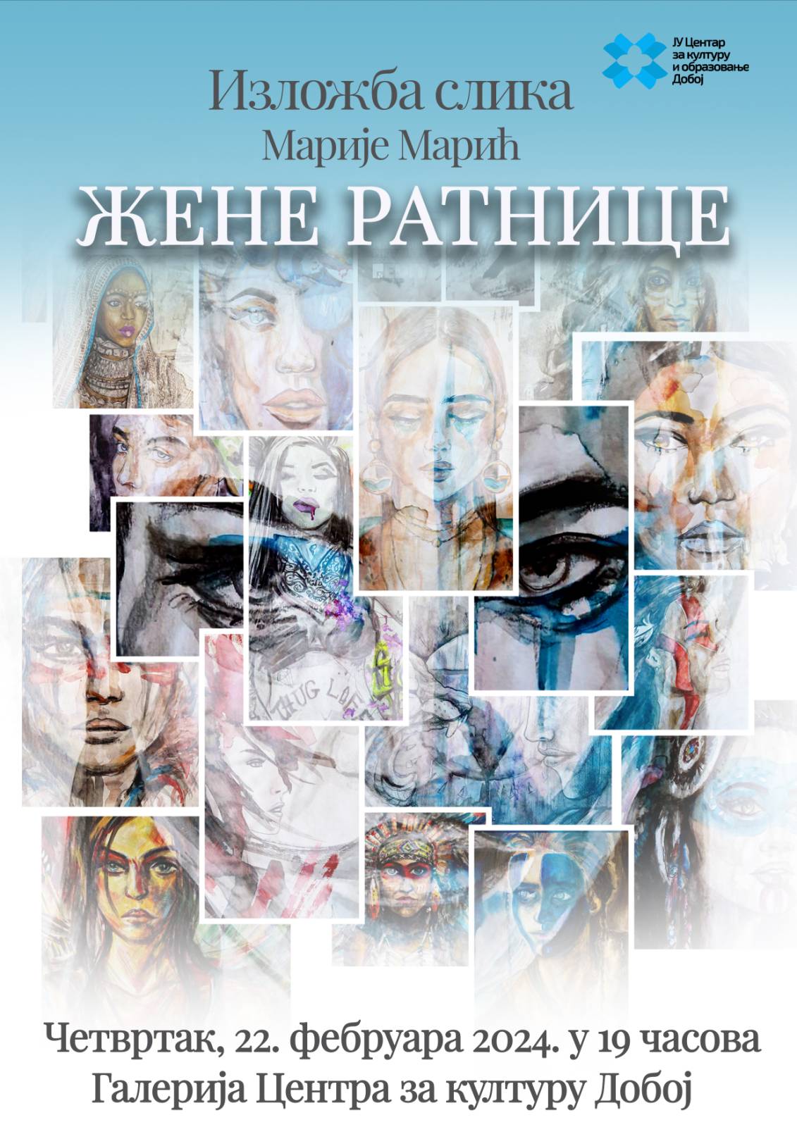 U četvrtak, 22. februara, sa početkom u 19 časova, Umjetnička galerija Centra za kulturu i obrazovanje poziva vas da svojim prisustvom uveličate svečano otvaranje likovne izložbe pod nazivom "Žene ratnice". Izložba predstavlja djela Marije Marić iz Doboja, koja će publici predstaviti svoje najnovije radove inspirisane temom žena ratnica.