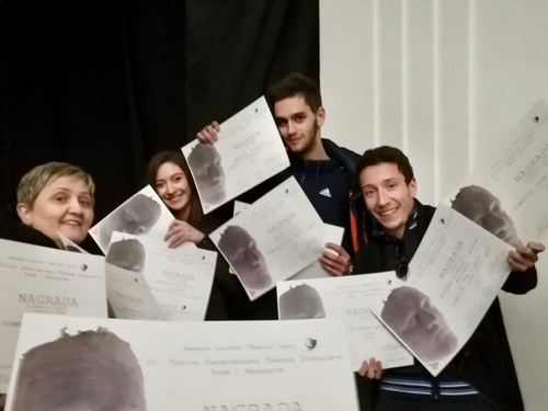 Nagrada za: Scenografiju, Kostimografiju, Koreografiju, Adaptaciju teksta-Gordana Vasić, prof; Režiju-Gordana Vasić, Prof; Za glumačko ostvarenje Tatjana Dujković za ulogu , Damjan Vuković za ulogu Policajca, Andrea Starčević za ulogu Majke, Nikola Milićević i Bogdana Gojković kao glumački par za ulogu Tomi i Anika, Izbor muzike- Dragoslav Cvijanović.