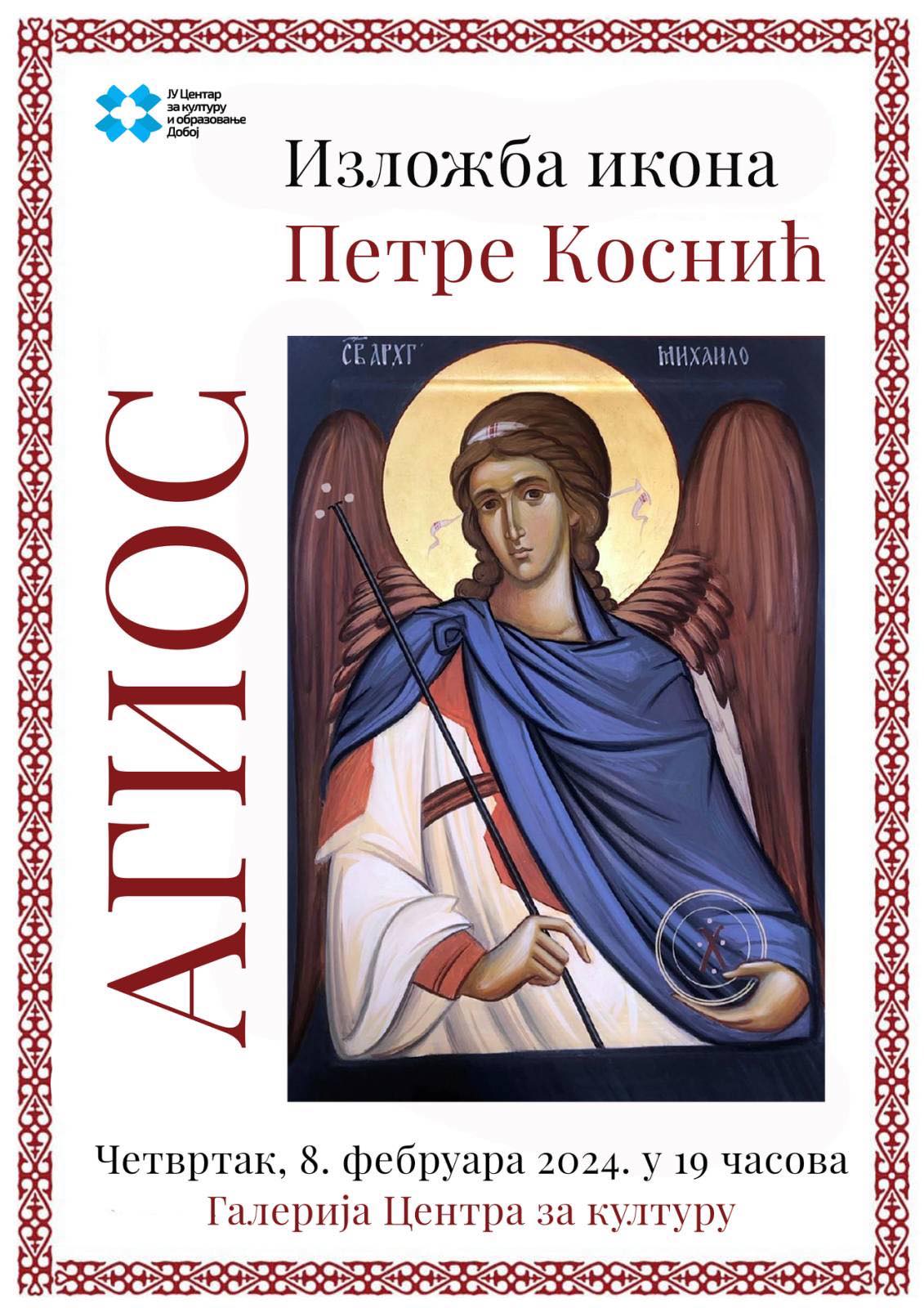 U četvrtak, 8. februara, u 19 časova, Umjetnička galerija Centra za kulturu i obrazovanje Doboj biće domaćin svečanom otvaranju izuzetne izložbe ikona pod nazivom „Agios“, autorke Petre Kosnić iz Beograda. Ovaj događaj predstavlja jedinstvenu priliku za ljubitelje umjetnosti i duhovnosti da se upoznaju s radom jedne od najistaknutijih srpskih umjetnica u oblasti ikonopisa.