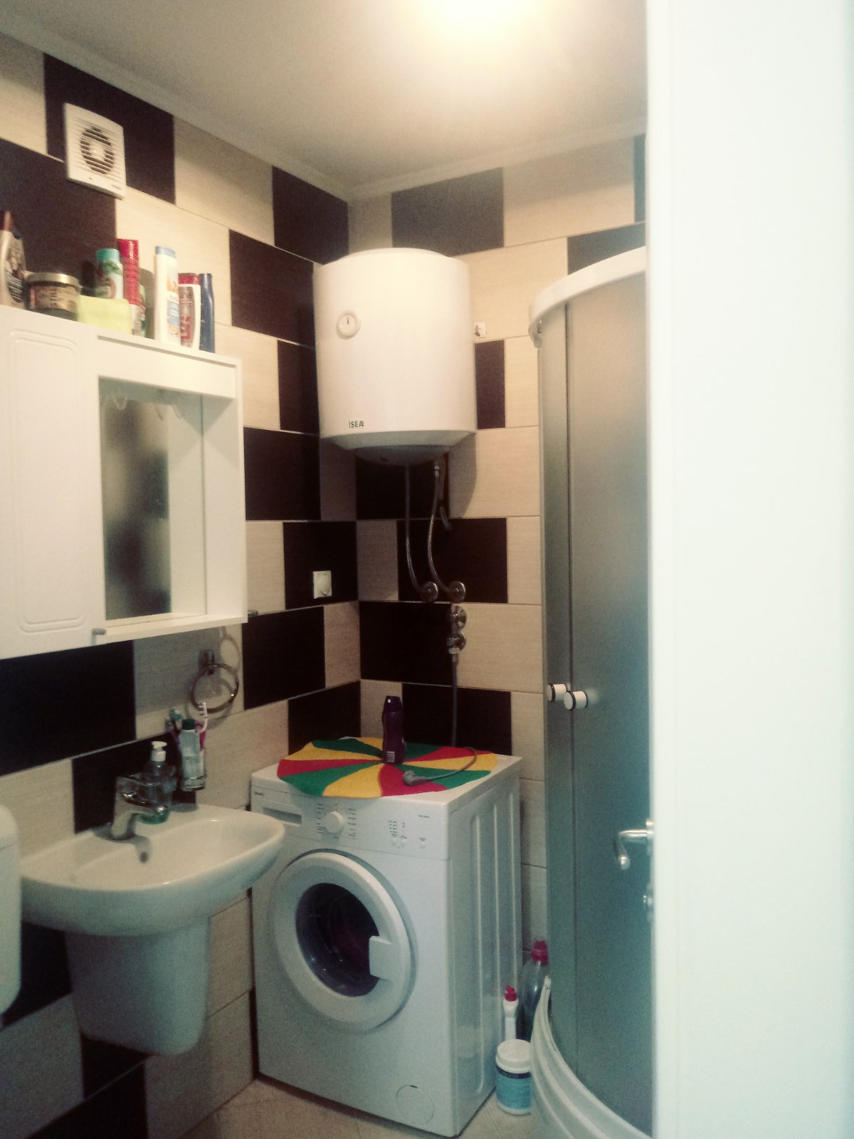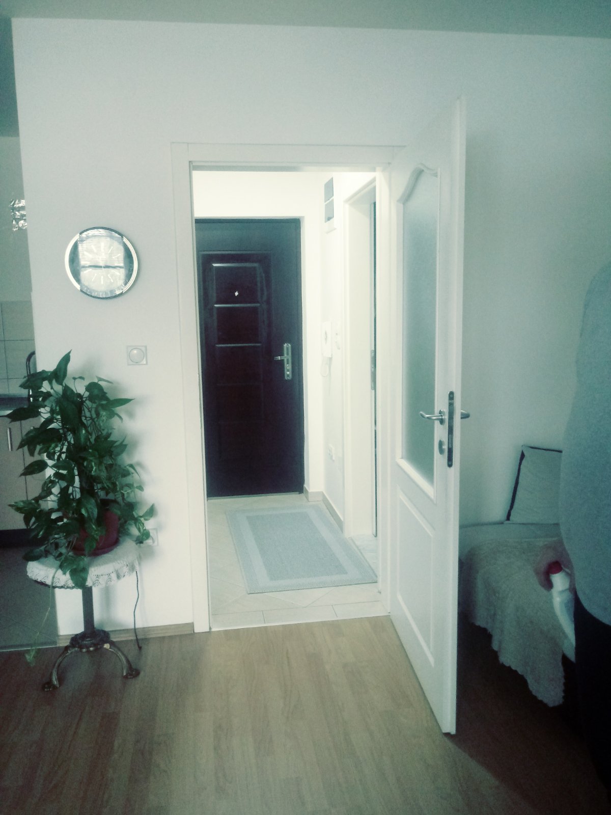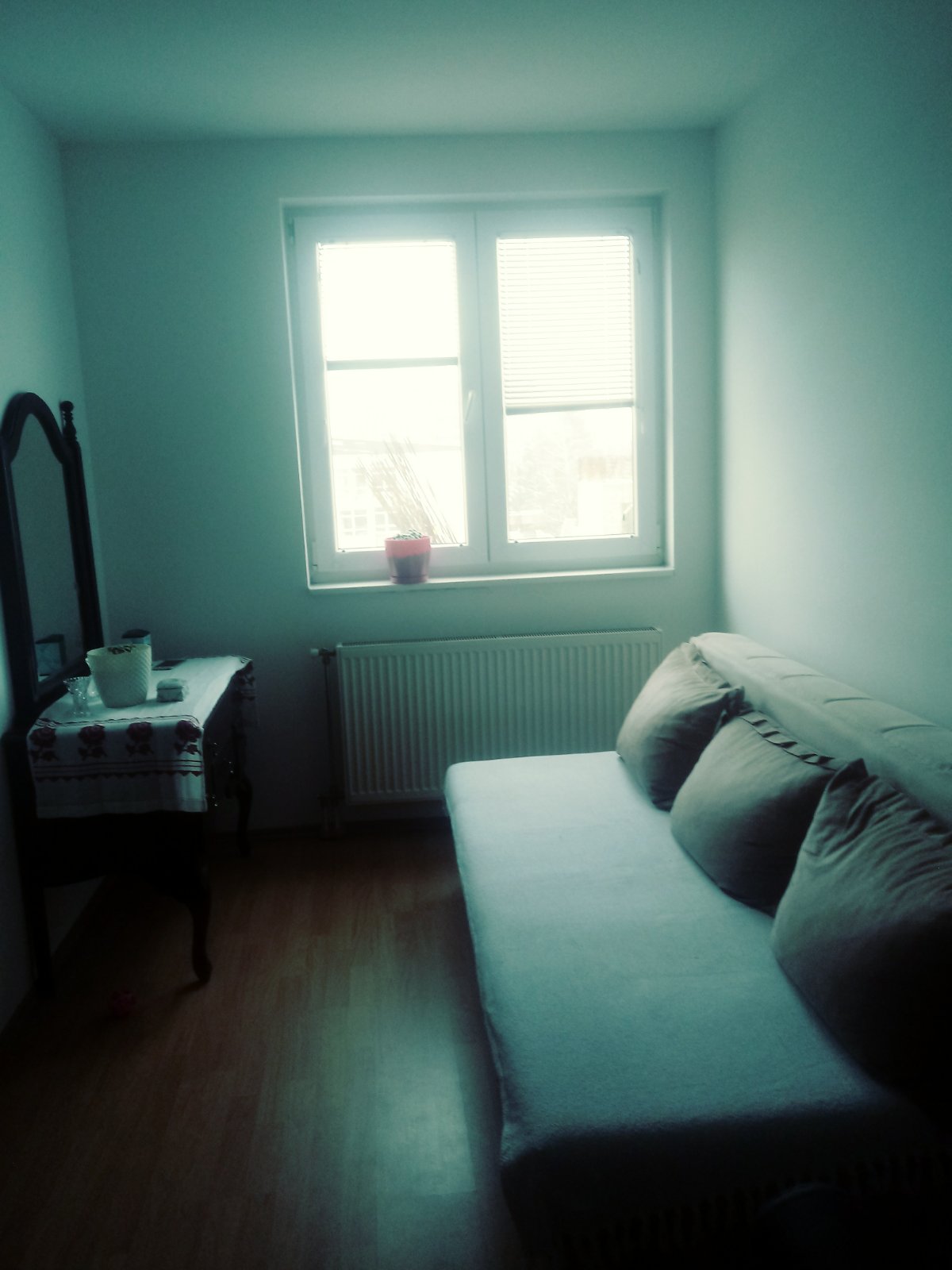Stan se nalazi iznad kafea "Moskva" i gleda na sportsku dvoranu Srednjoškolskog centra.