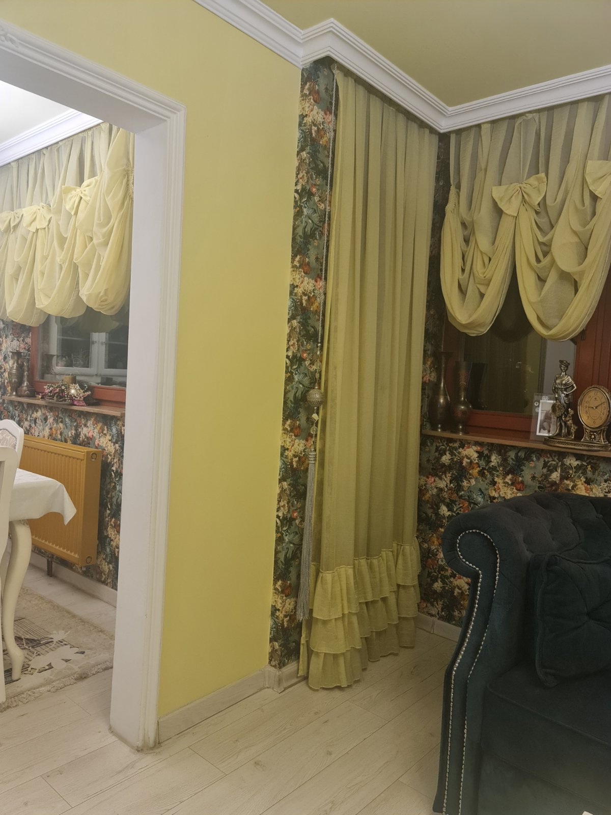 Zavjese za dnevni boravak: Dvije zavjese, dimenzije 2.20m x 1m, dizajnirane da dodaju toplinu i udobnost vašem dnevnom boravku.