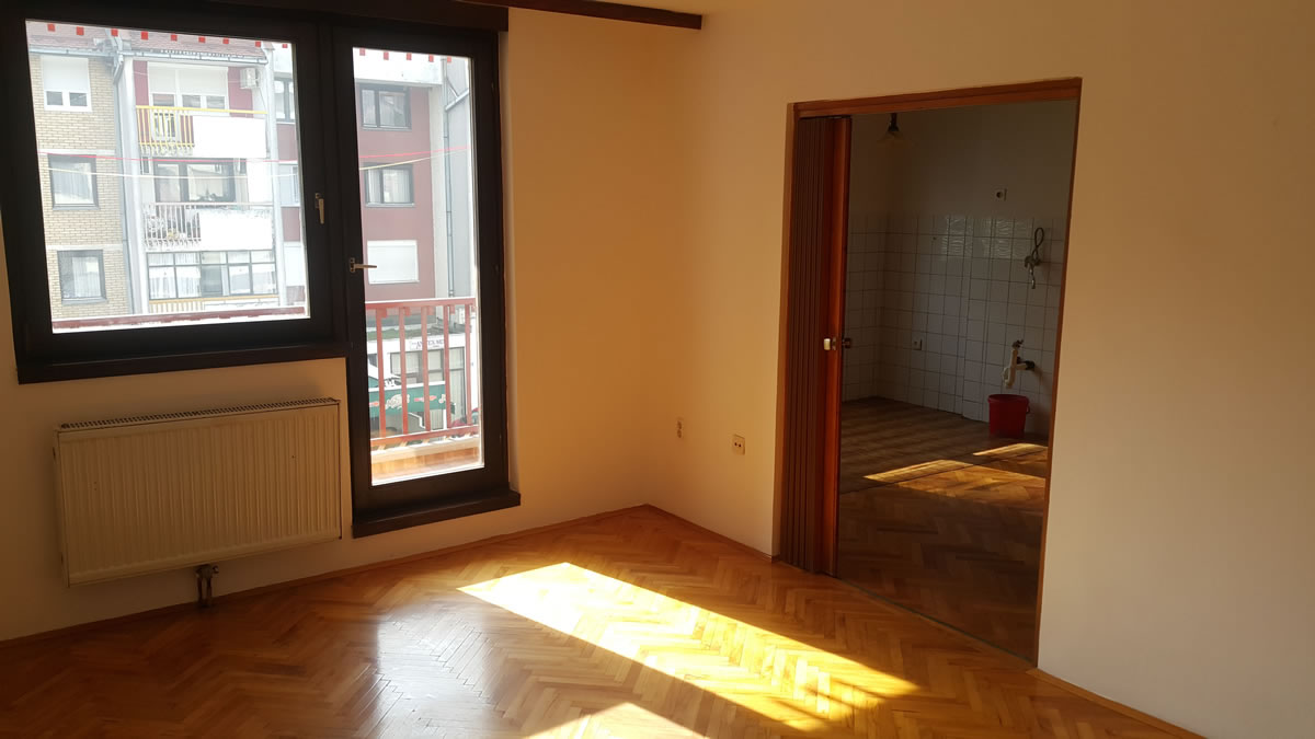 Iznajmljujem dvosoban stan u naselju "Pijeskovi", zgrada do "Željinog" stadiona. Stan se nalazi na drugom spratu, veličine 60m2 + terasa.