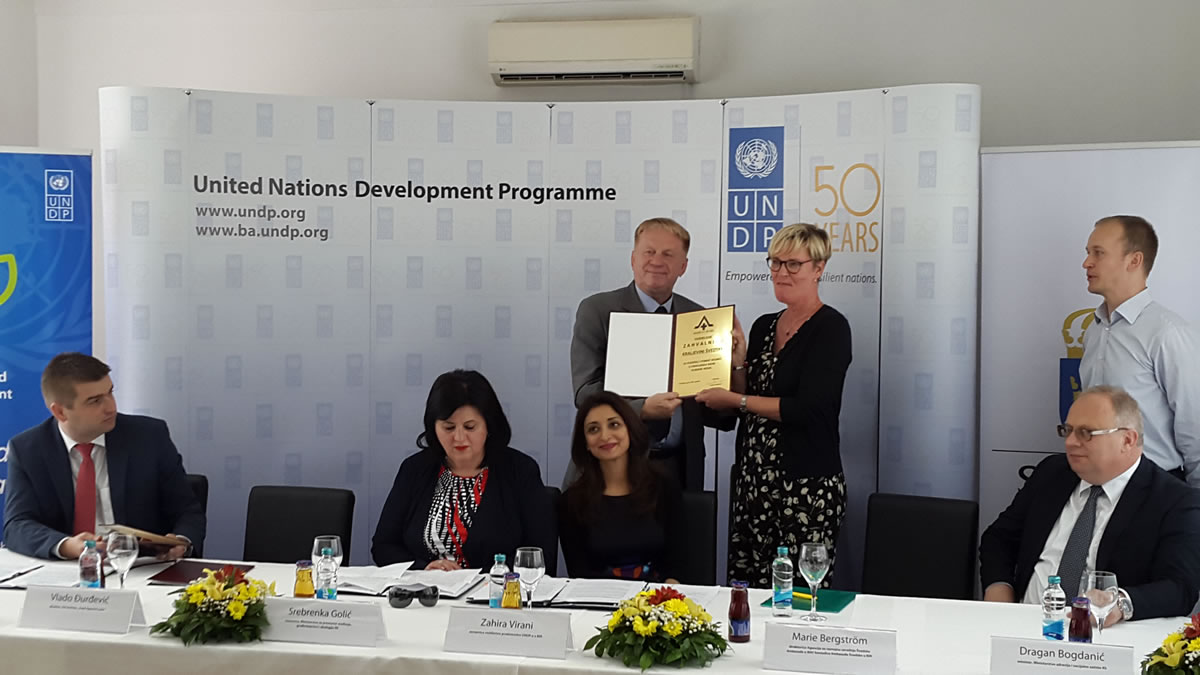 Direktor Agencije za razvojnu saradnju švedske Ambasade u BiH Mari Bergstrom navodi da su za realizaciju povećanja energetske efikasnosti u BiH, švedski poreski obveznici izdvojili 5.000.000 evra putem Razvojnog programa UN.